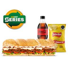 Disfruta 2 Subs 15 cms +1 Bebida + 1 Galleta a un gran precio. Elige tu Sub entre BMT, Pollo o Pizza Sub.