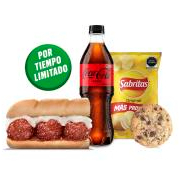 En Combo es mejor: albóndigas, salsa marinara con vegetales y salsas de tu elección mas bebida y papas o galleta.