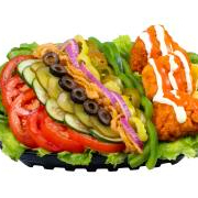Vegetales frescos con boneless de pollo bañados con salsa de alitas, aderezo ranch, cebollas crujientes con el queso y vegetales de tu elección.