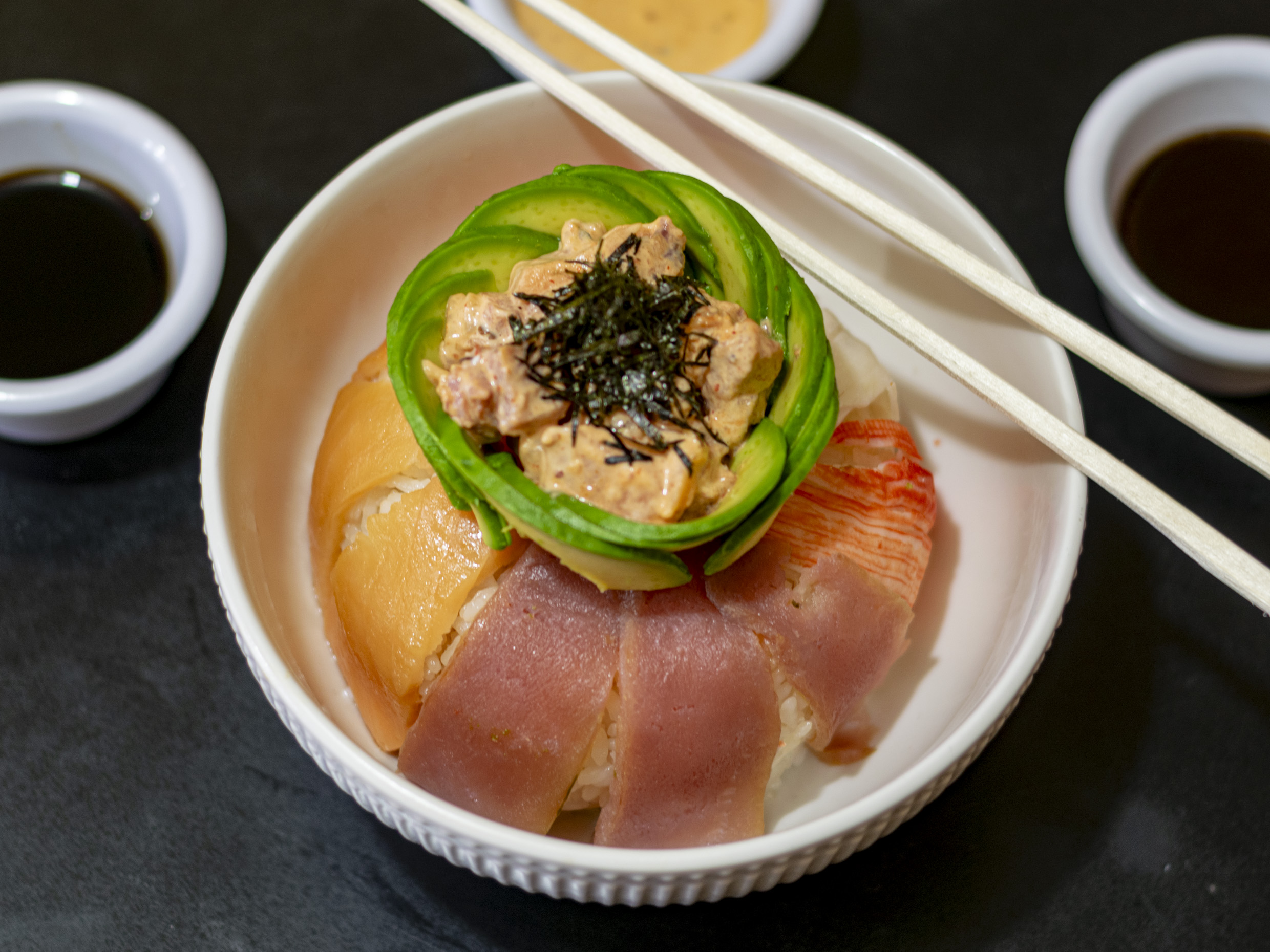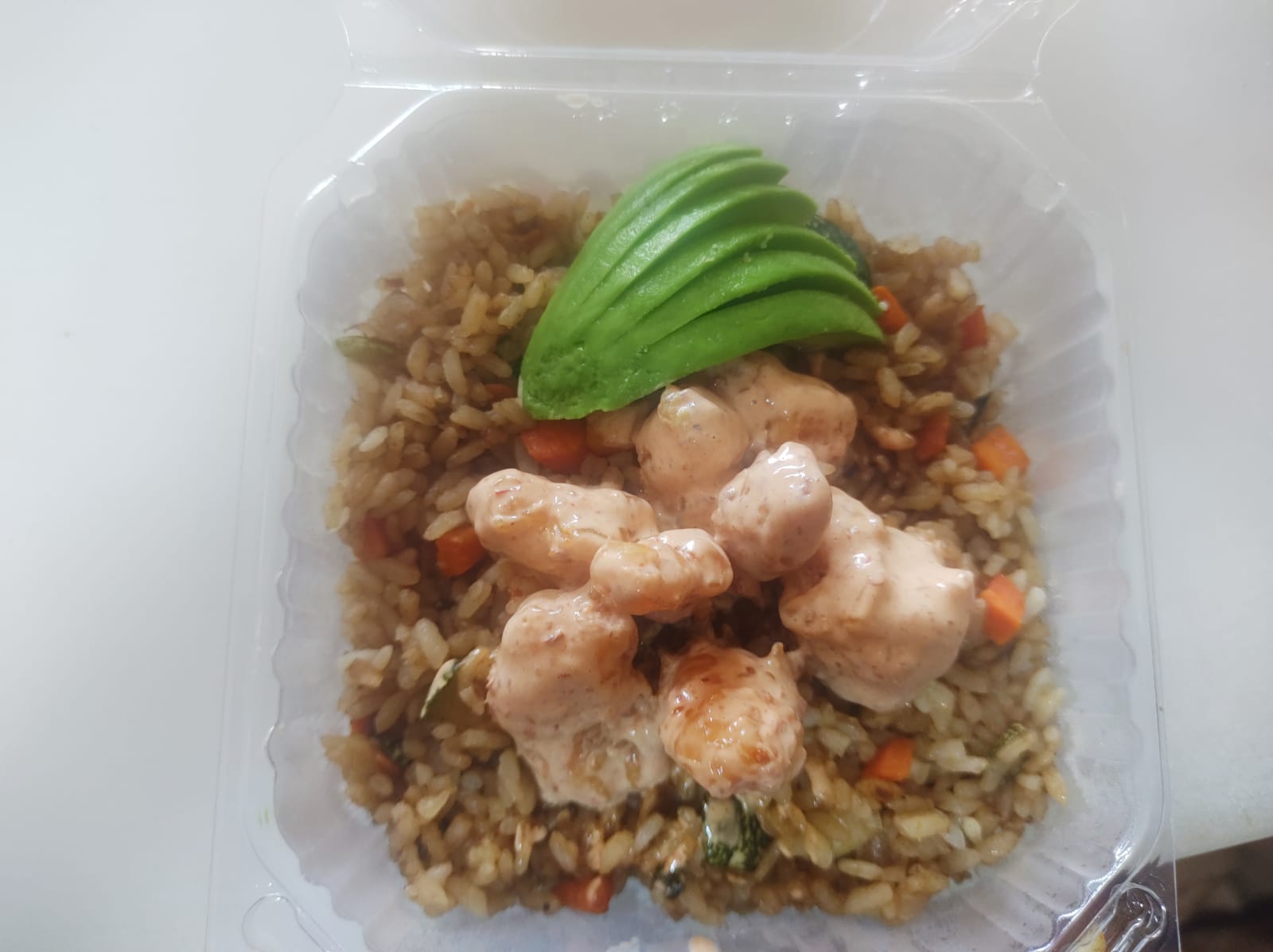 Tazón on arroz de sushi, Proteina elegir, aguacate, salsa, chipotle y nori (kani,ebi, sake, tuna o mixto)