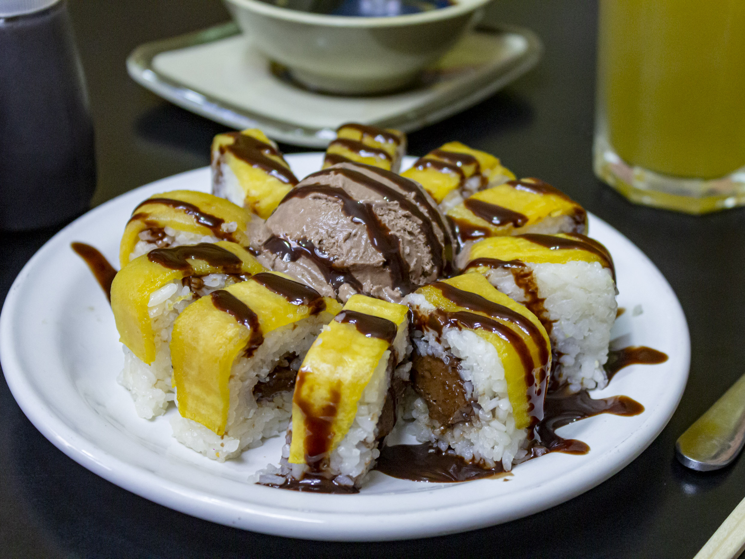 10pz XF: Mango XD: Camarón empanizado, aguacate y queso Philadelphia