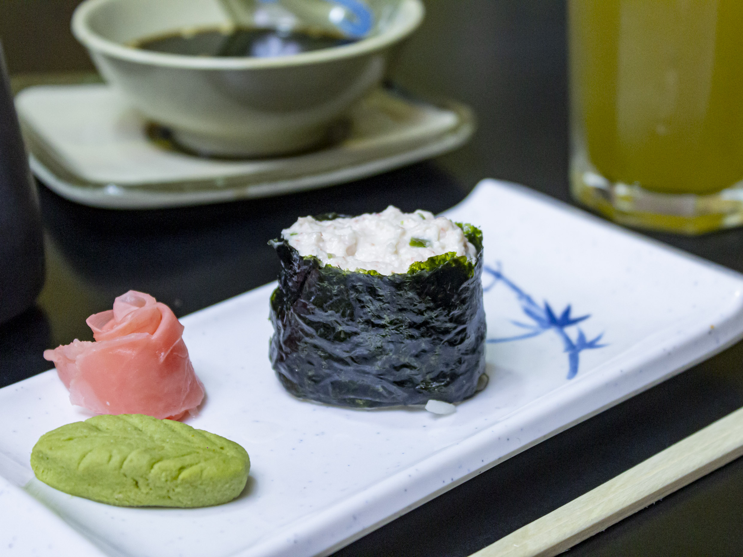 XF: Nori XD: Aguacate, salsa spicy y pescados mixtos (Salmón, atún y camarón)