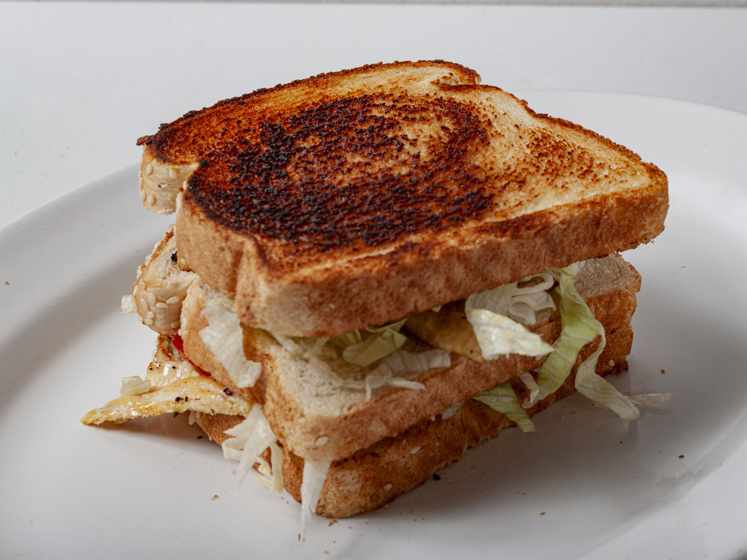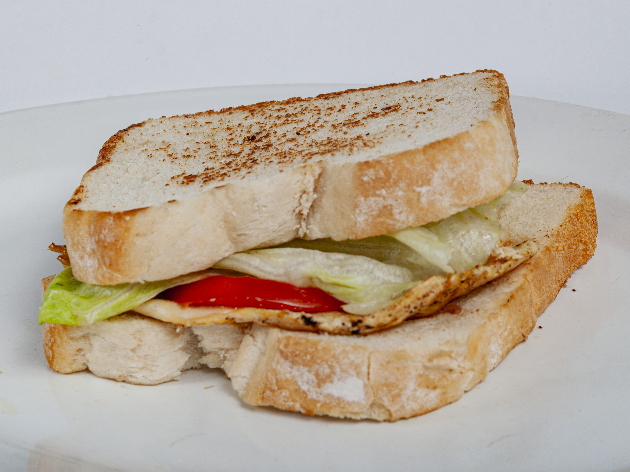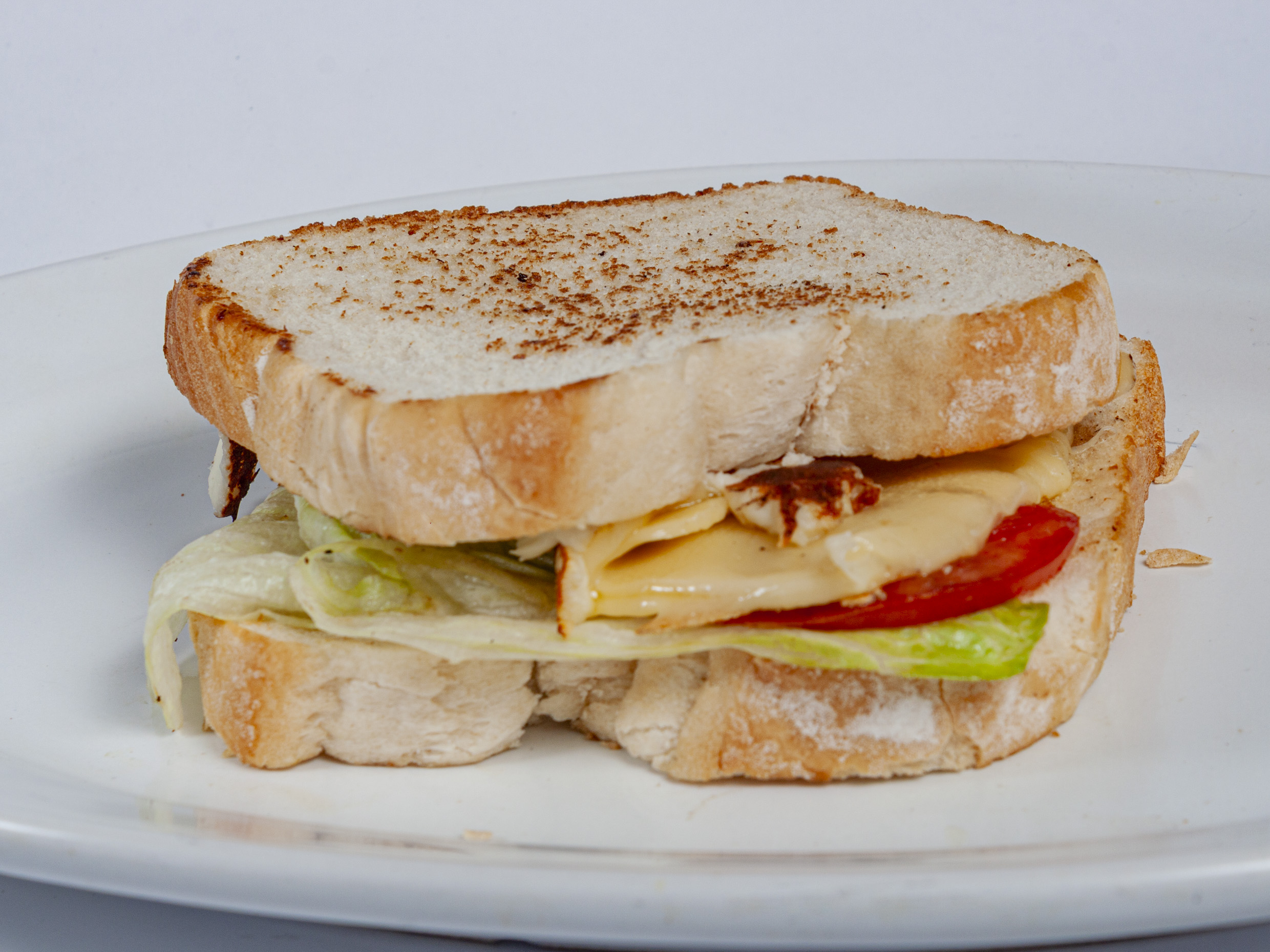 Pollo asado, queso manchego, jitomate, lechuga y salsa de tomate.