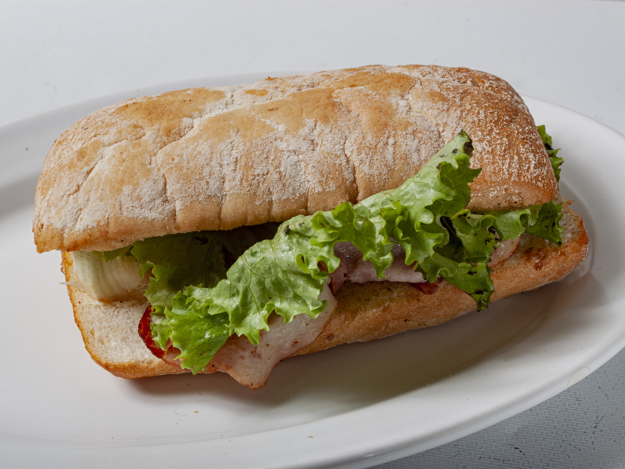 Jamón, queso panela, guacamole, jitomate, lechuga, mayonesa y chipotle.