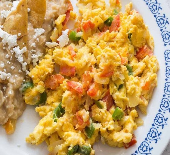 Deliciosos Huevos a la Mexicana con frijoles refritos