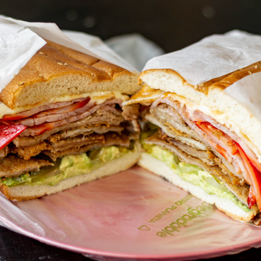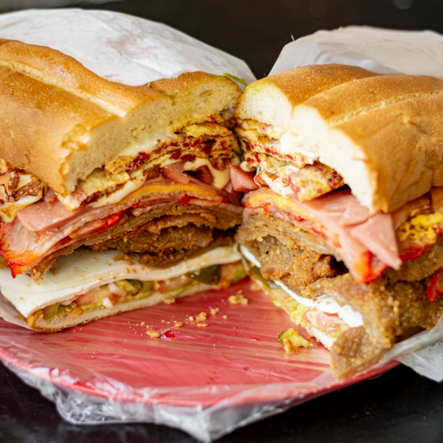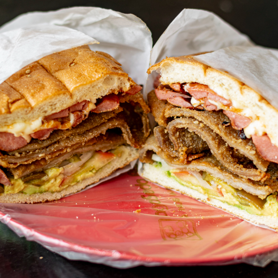 Torta cebolla, aguacate, jitomate, mayonesa jamón, milanesa, pierna, quesillo, chorizo, salchicha, huevo, queso blanco, queso amarillo y acompañamiento a elegir.