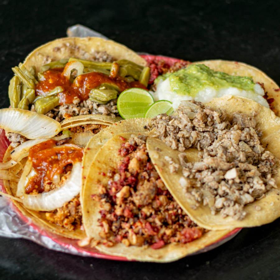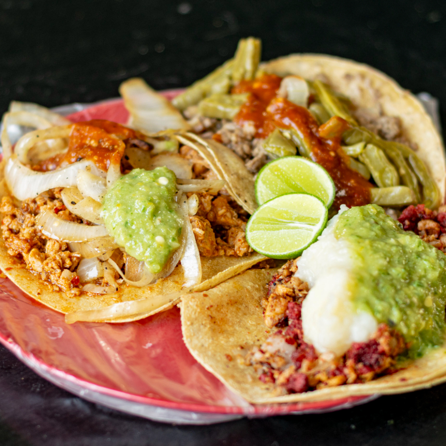 Tacos en tortilla de maíz y complementos a elegir.