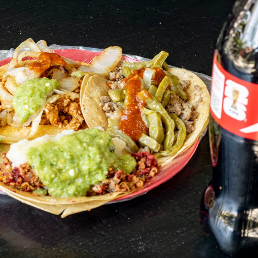 3 Tacos a elegir, 3 complementos a elegir, y bebida Coca Cola de 600 ml.