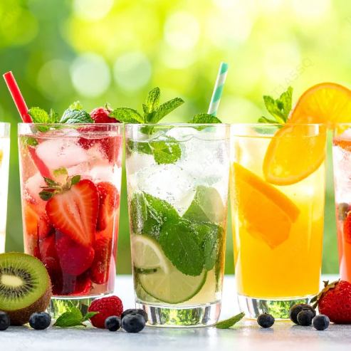 Agua de fruta fresca echa al momento.