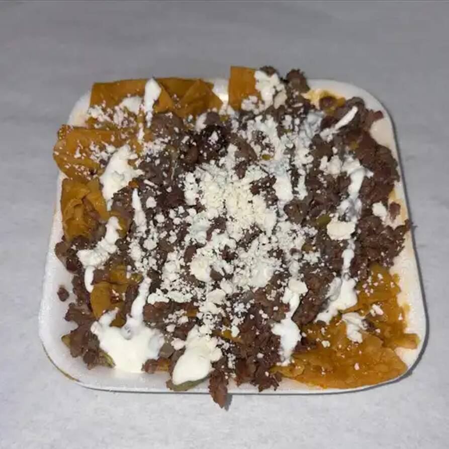 Ricos chilaquiles con carne de tu preferencia.