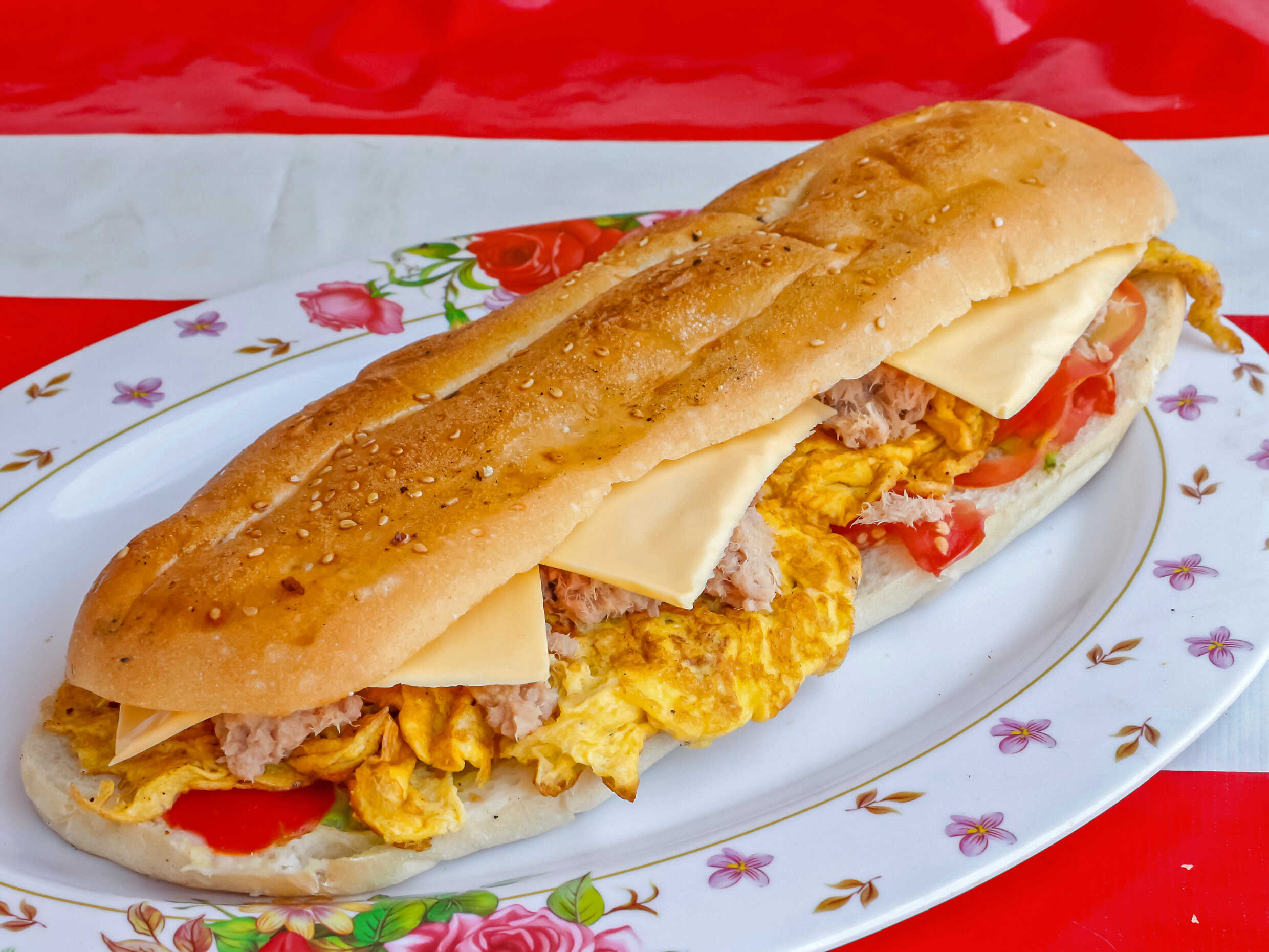 Con huevo, atún y quesillo.