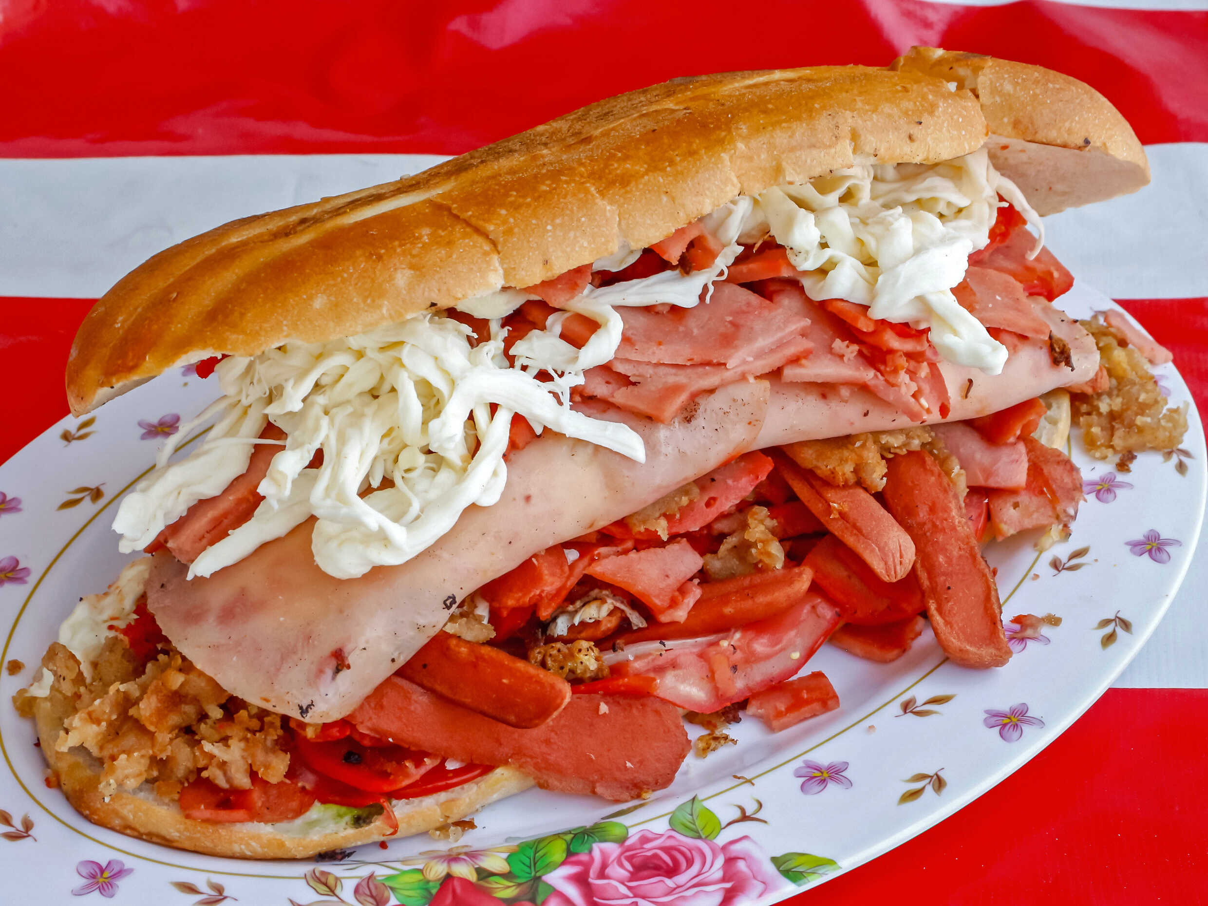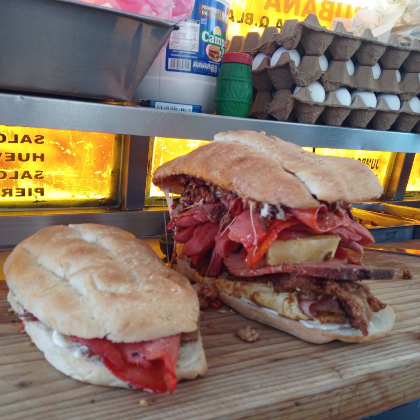 Con huevo, jamón, queso blanco, amarillo, quesillo, salchicha, milanesa, pierna y chorizo.