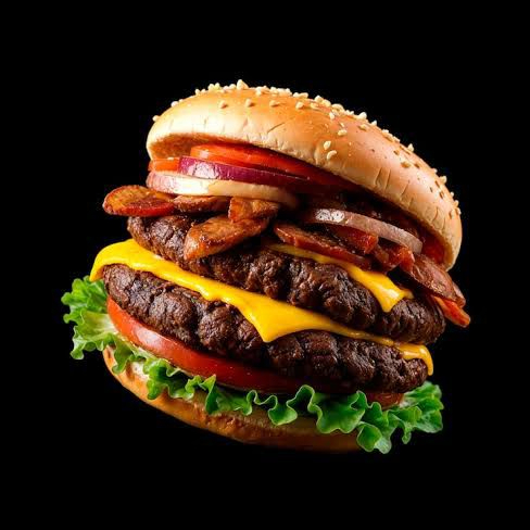 doble carne de res, queso queso amarillo y tocino, mostaza mayonesa y catsup, jitomate y pincante