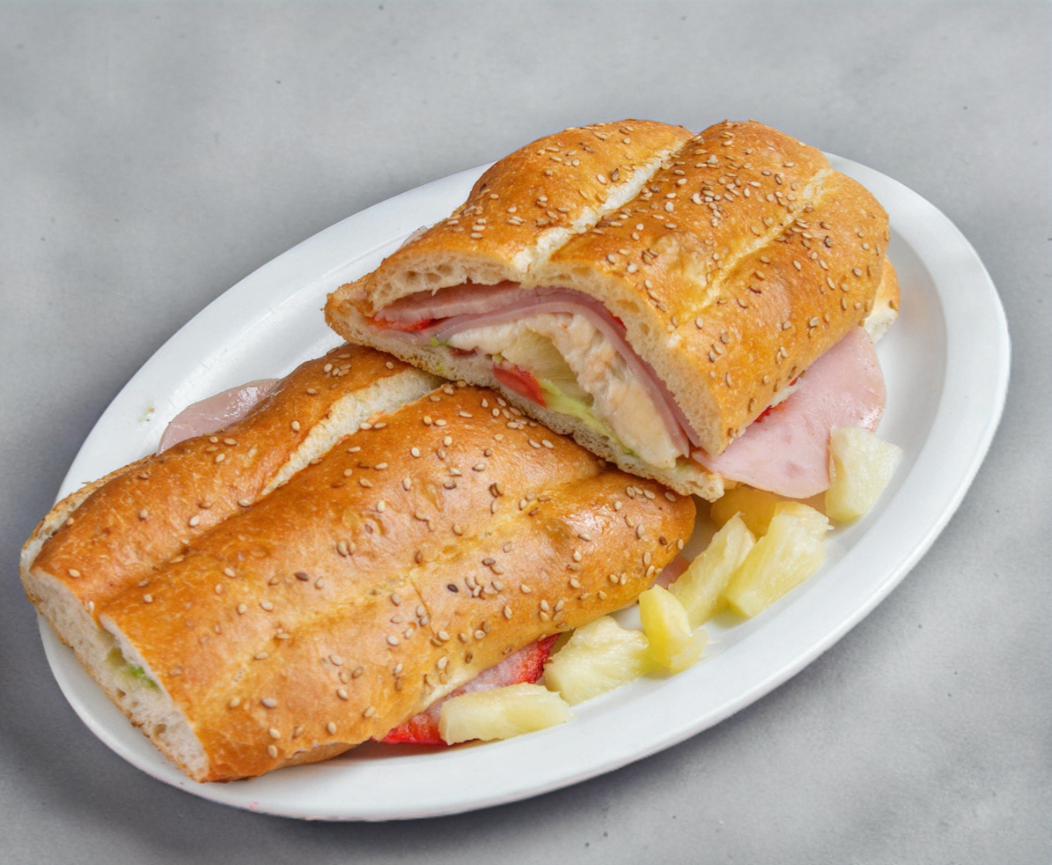 Pierna, jamón, quesillo y piña.