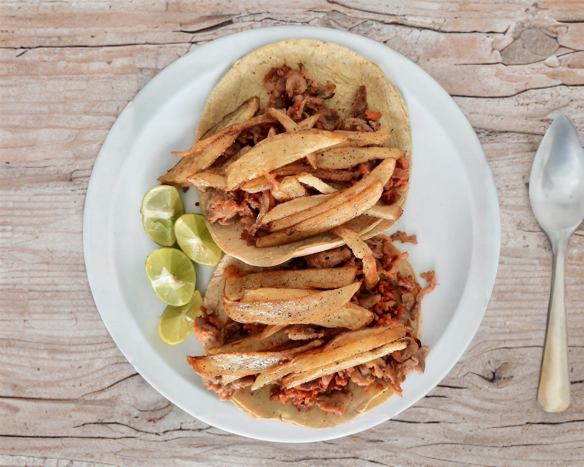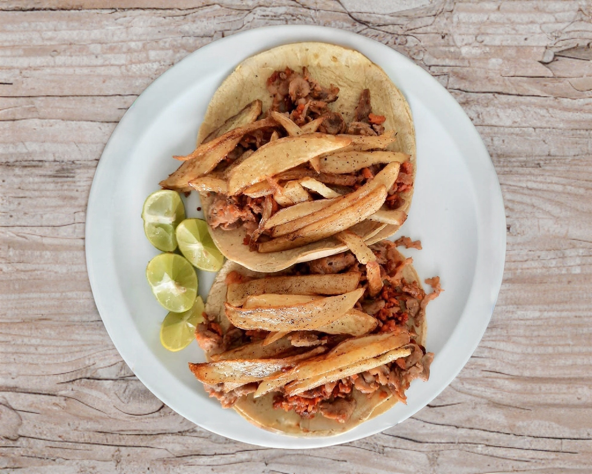 Papas fritas, nopales y cebolla.