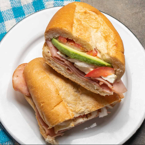 Jamón huevo y quesillo jitomate aguacate mayonesa frijoles a elegir.