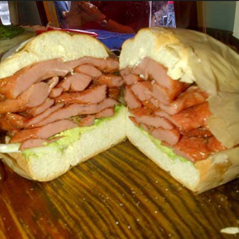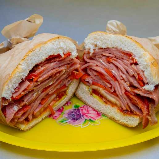Jamón quesillo y salchicha frijol, mayonesa, aguacate, jitomate y chipotle.