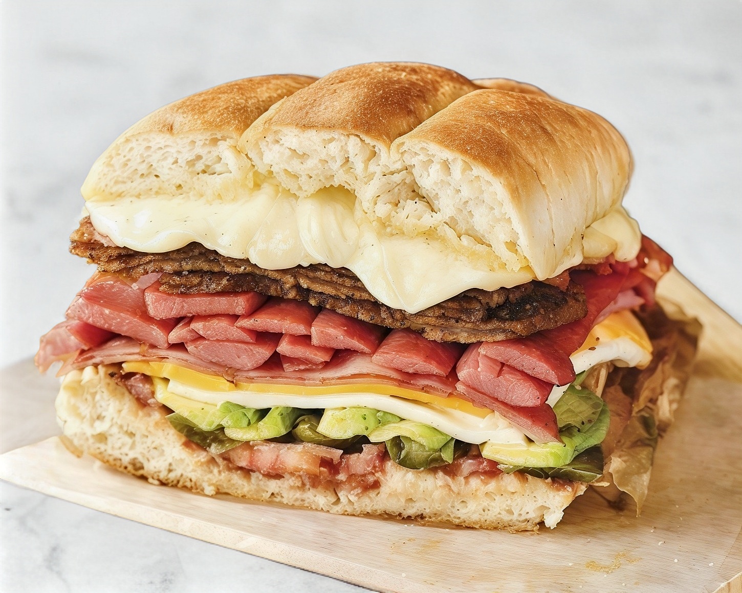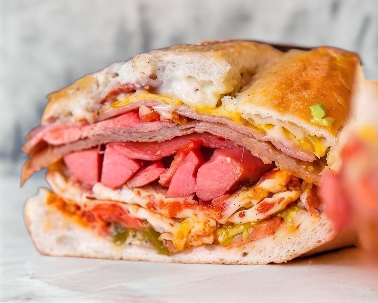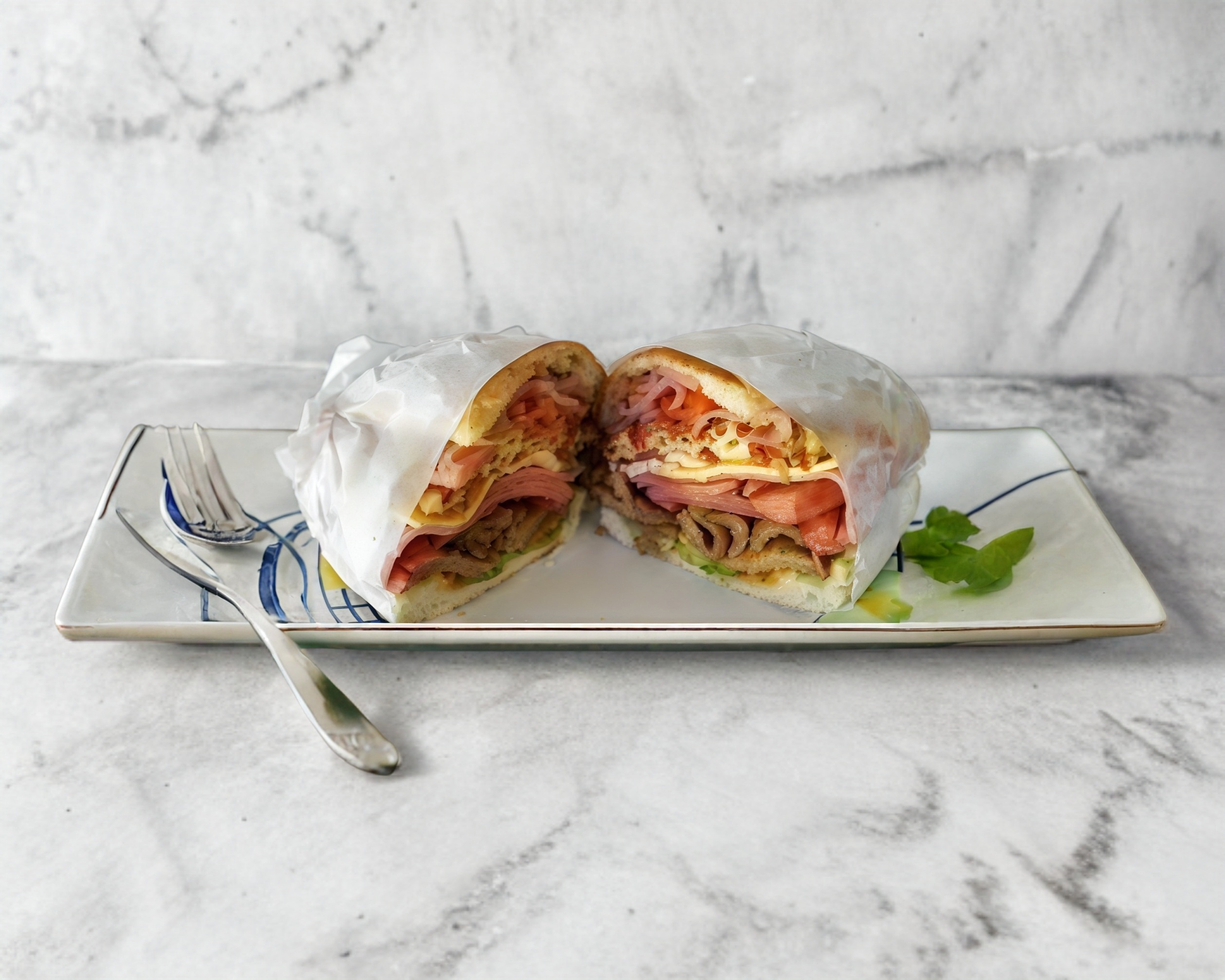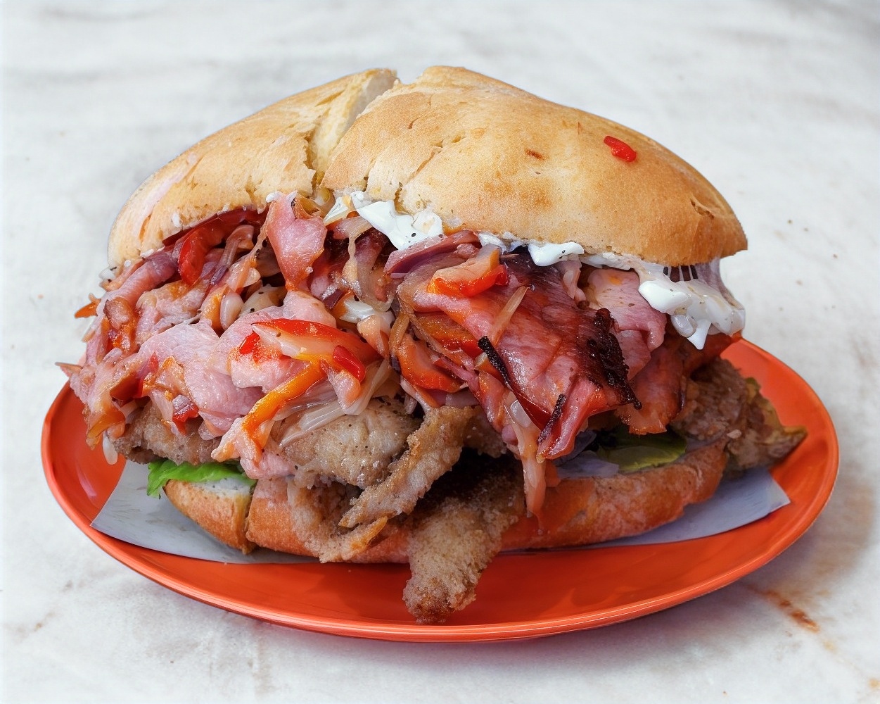 Con milanesa, pierna, jamón, huevo, chorizo, queso blanco, queso de puerco, quesillo y queso amarillo. Incluye frijoles, mayonesa, aguacate, cebolla y jitomate. Elige tu picante.