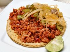 Taco con nopales, papas y cebolla. Elige tu salsa.