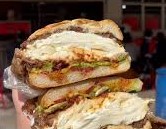 Con bistec, tocino y quesillo. Incluye frijoles, mayonesa, aguacate, cebolla y jitomate. Elige tu picante.