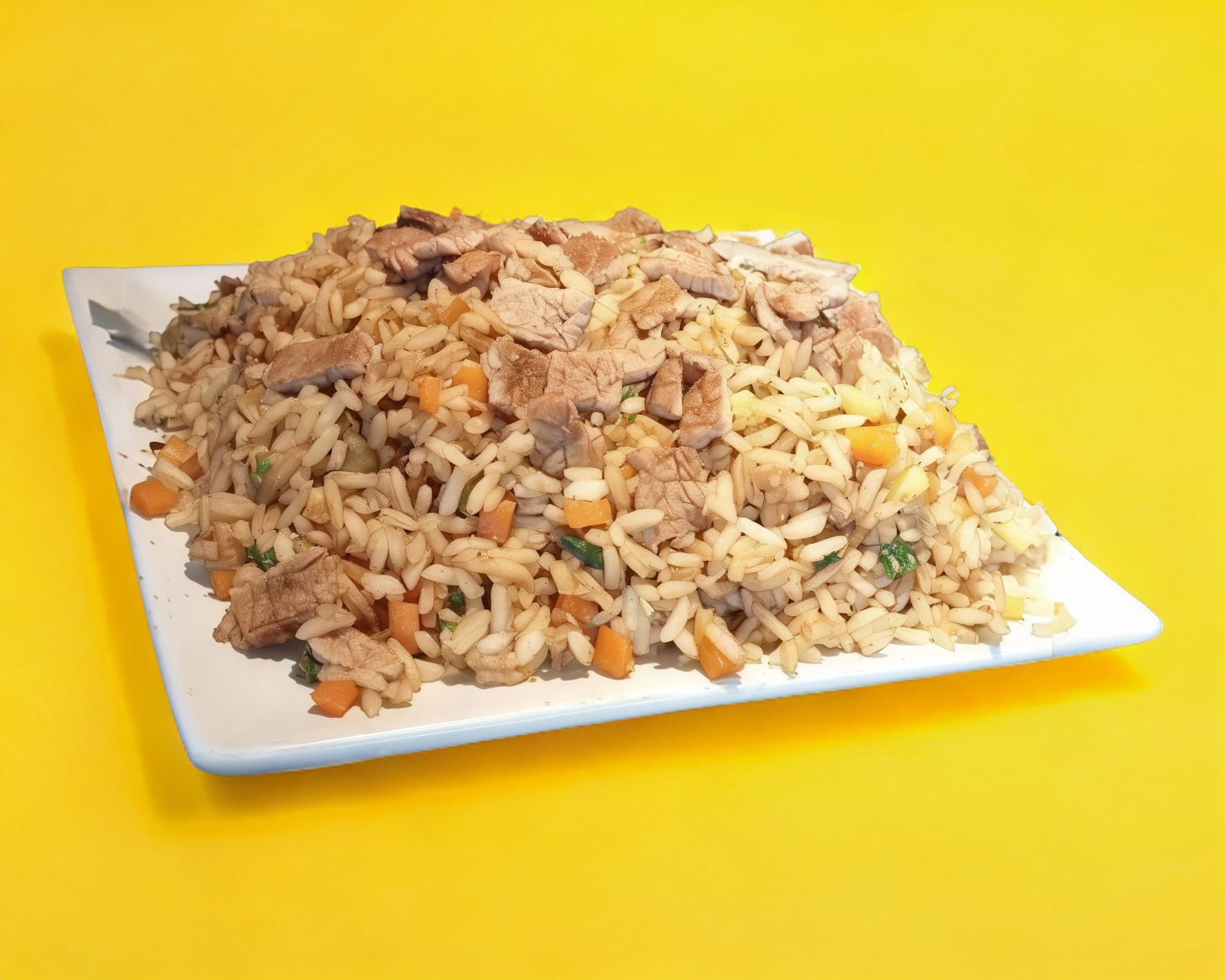 ✨ Arroz frito a la plancha con verduras frescas (cebolla,calabaza y zanahoria) y jugoso pollo , un clásico lleno de sabor.