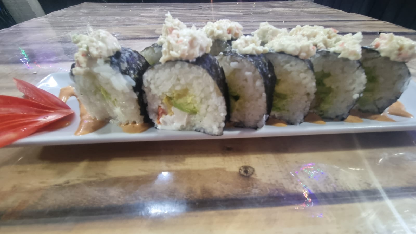 XD surimi empanizado aguacate XF queso manchego salsa de soya y chipotle