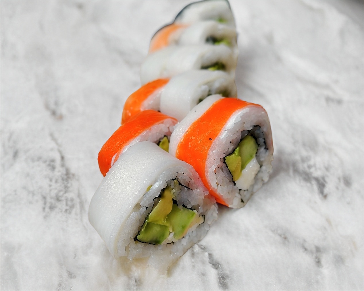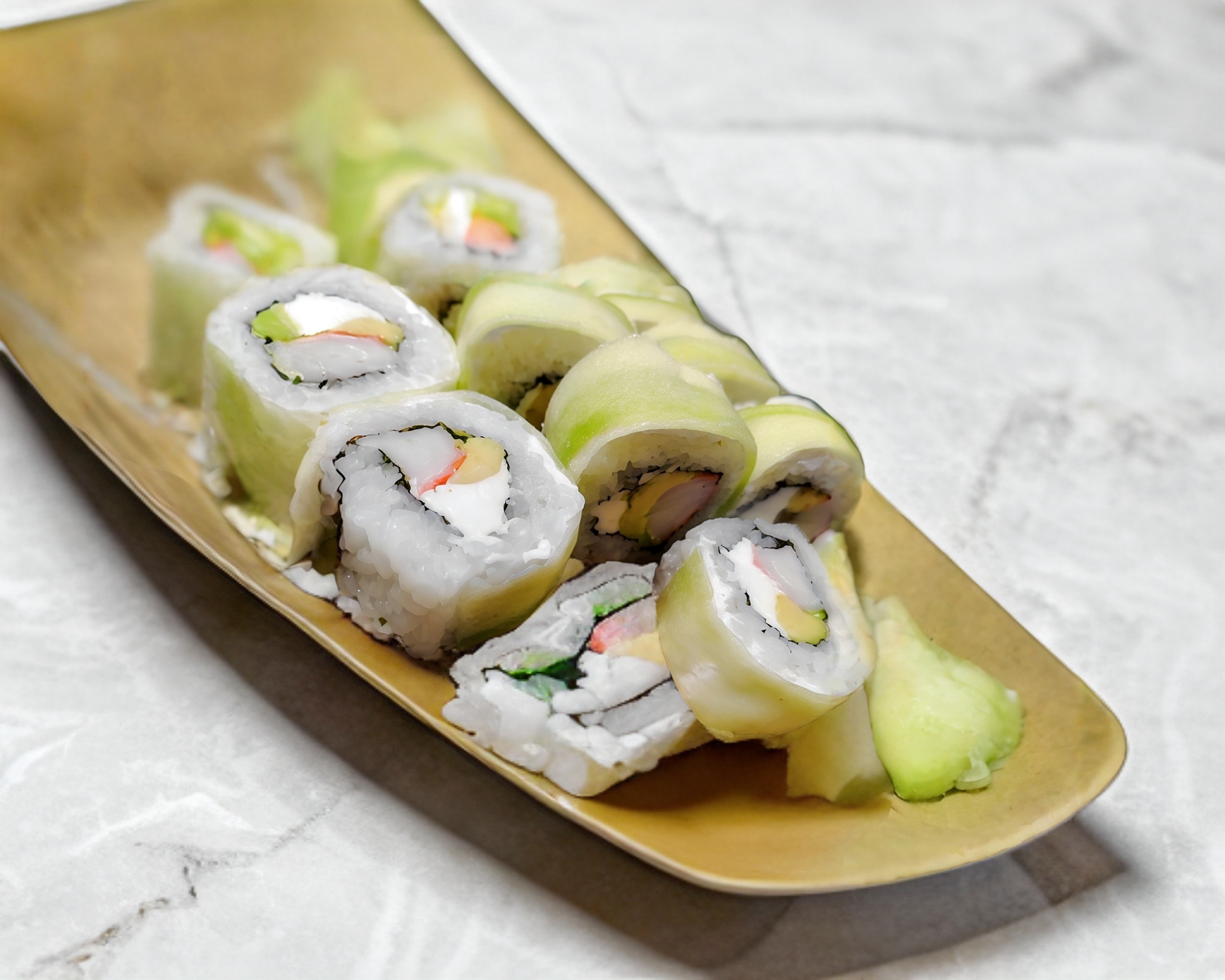 PD: surimi, aguacate y queso PF: laminas de pepino