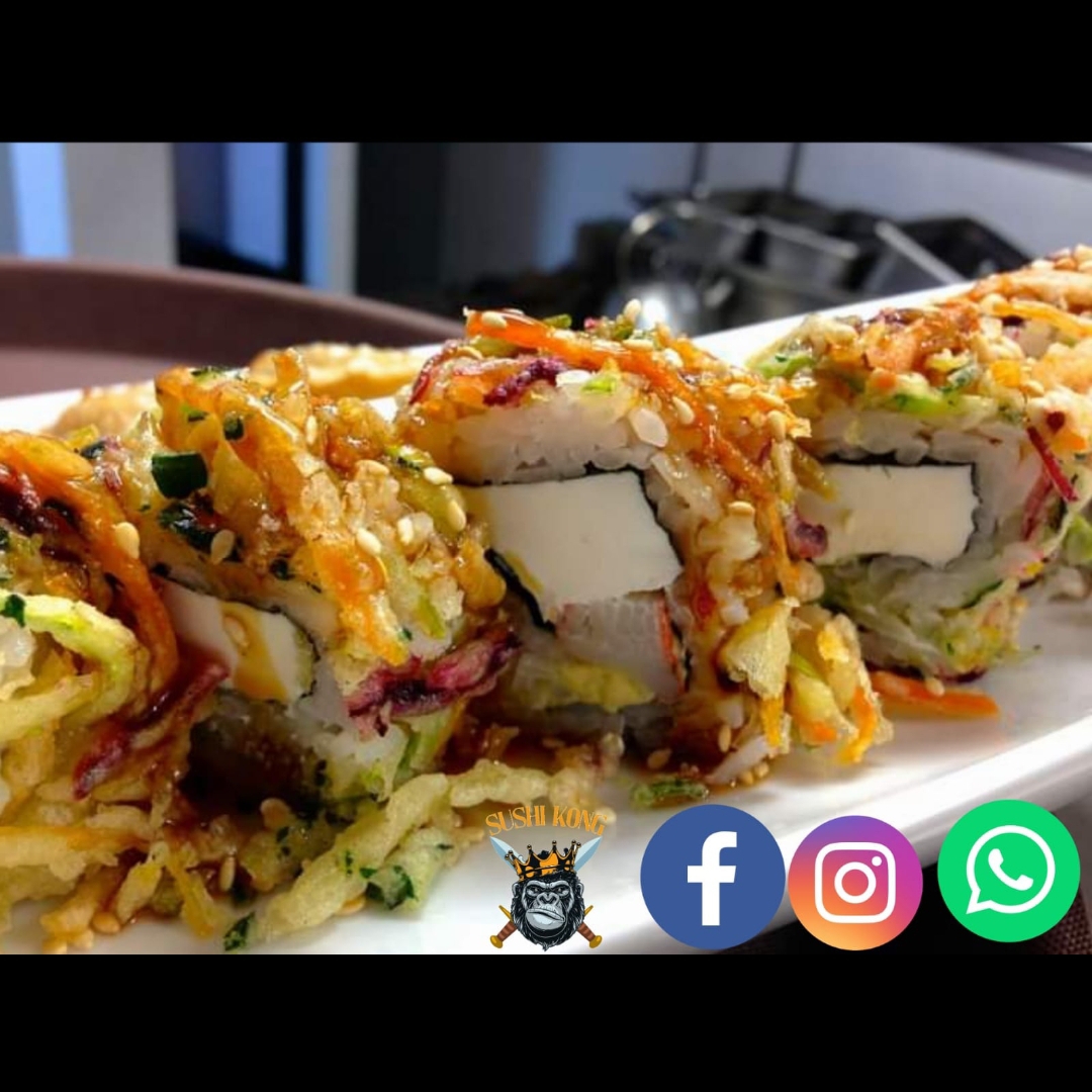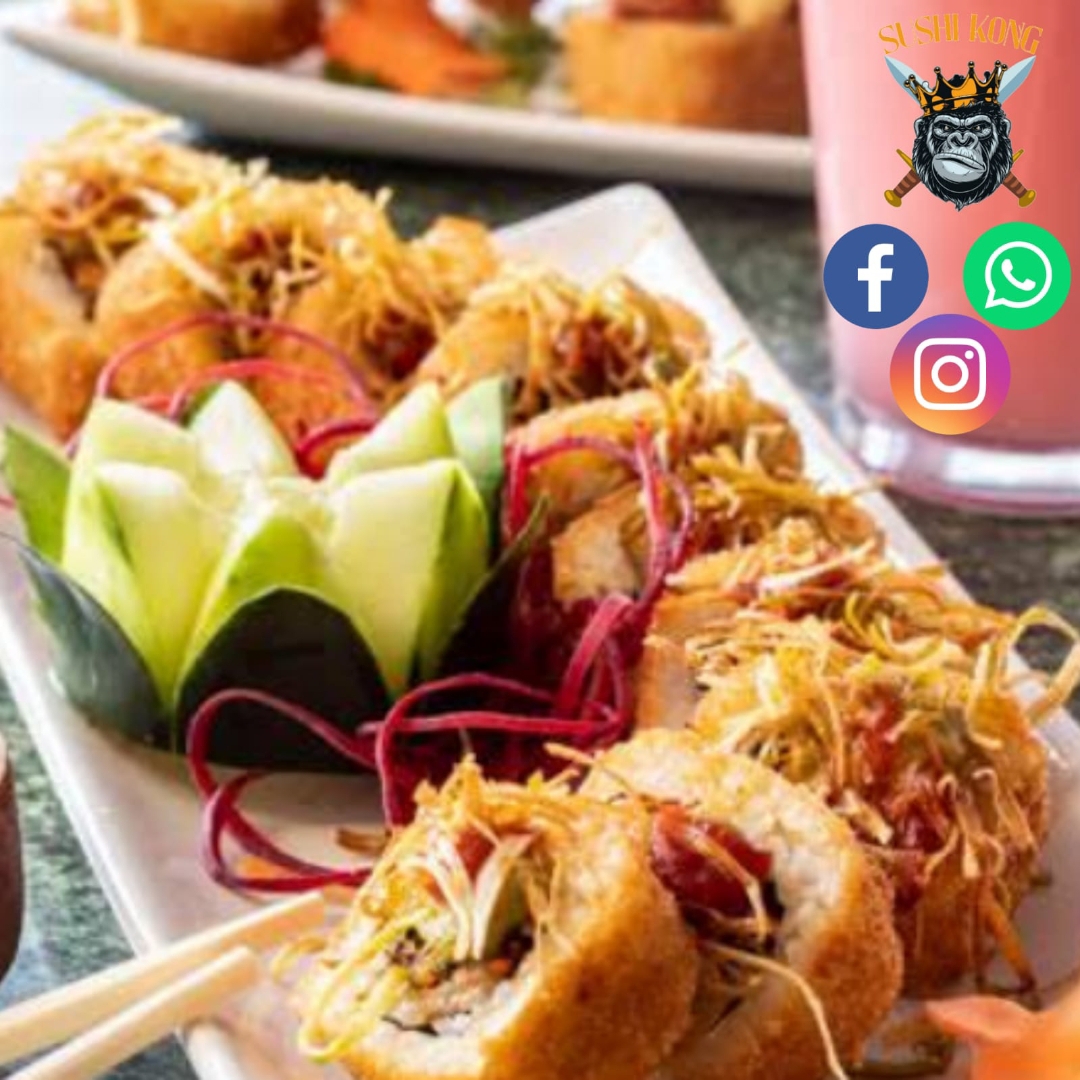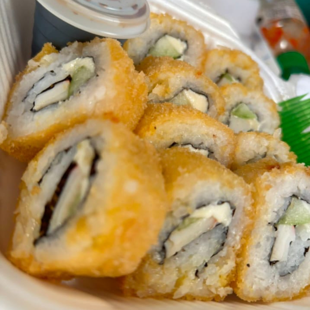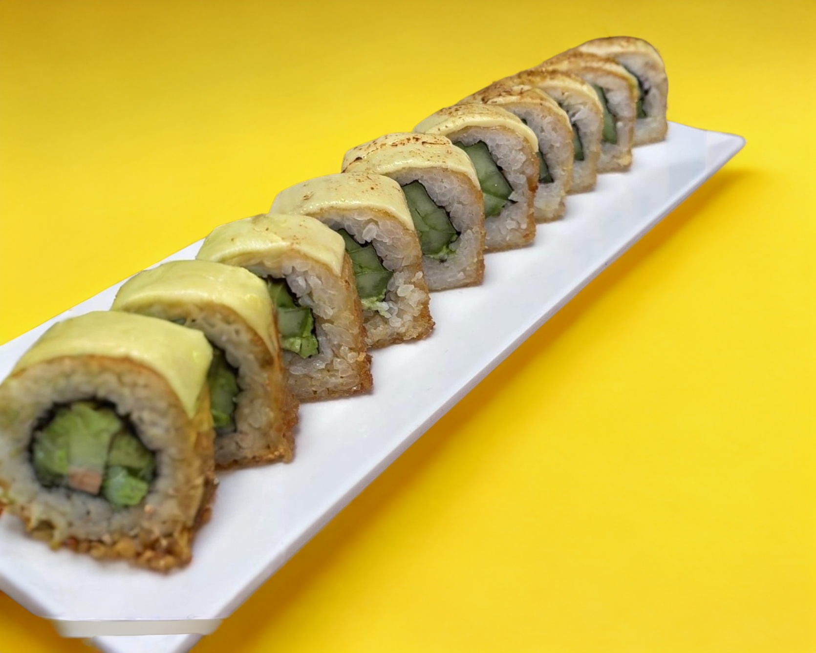 Rollo de 10 pz PD: aguacate y pepino PF: empanizado con una capa de queso manchego fundido