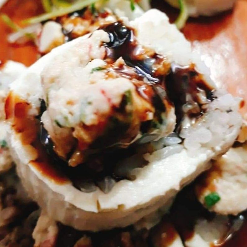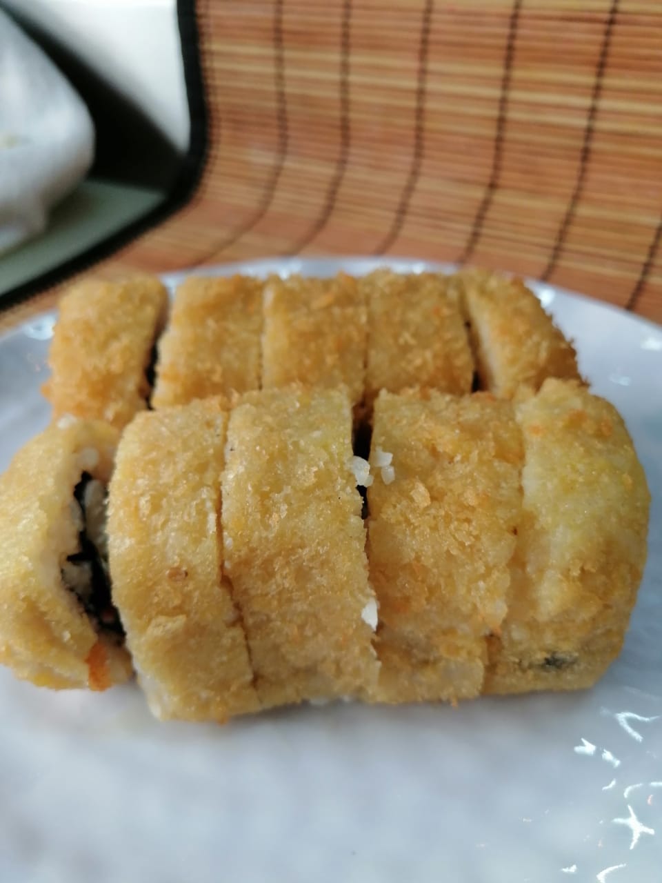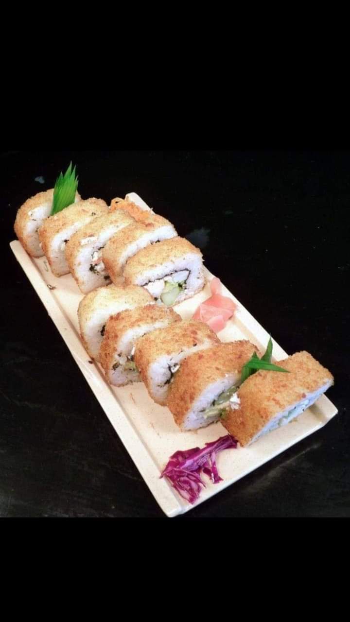 Sushi empanizado exquisito camarón empanizado ,queso crema y su tradicional aderezo de tampico arriba, con su riquísima salsa de anguila una gran combinación para tu paladar