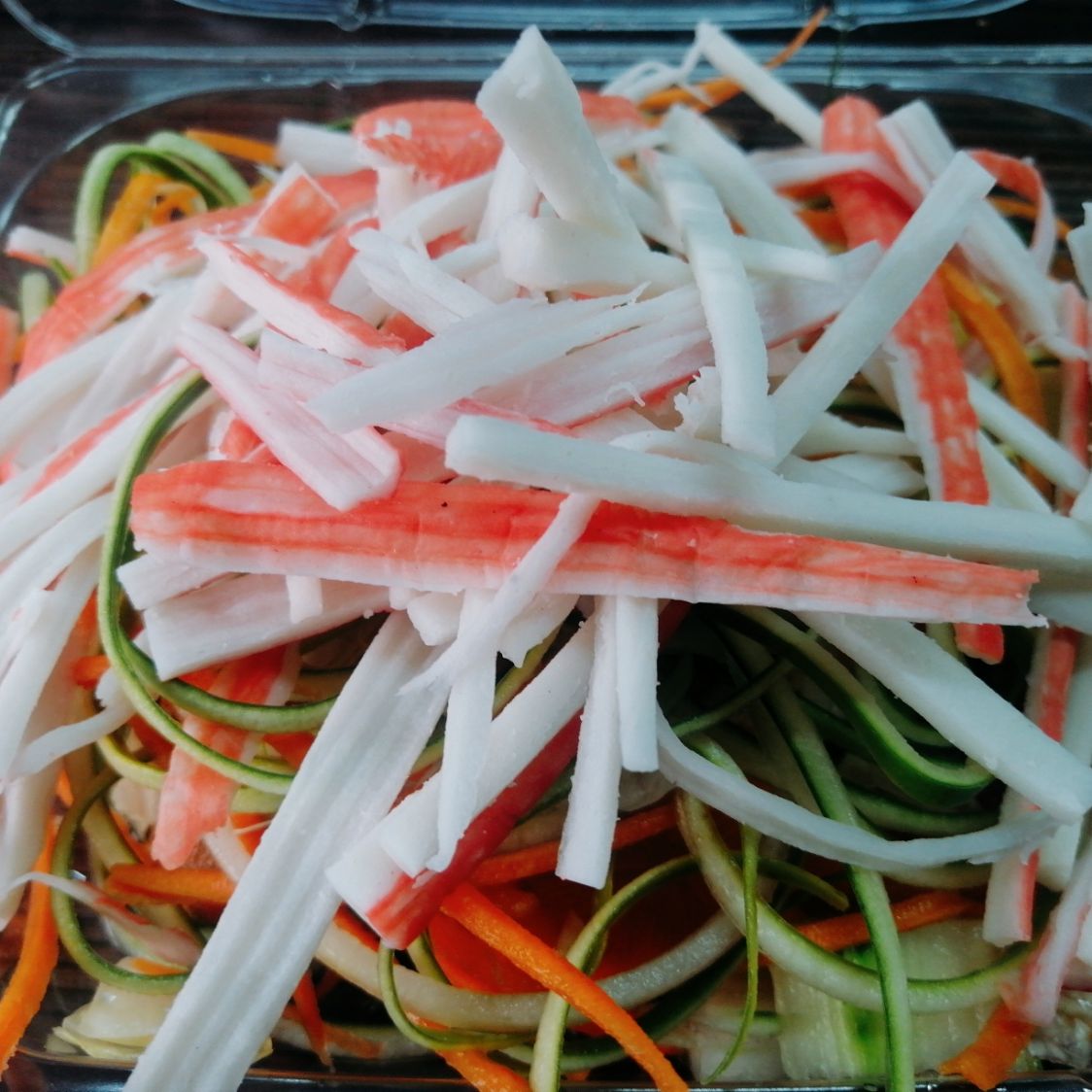 surimi, zanahoria ,pepino ,lechuga ,aderezo mil islas, ajonjolí dulce