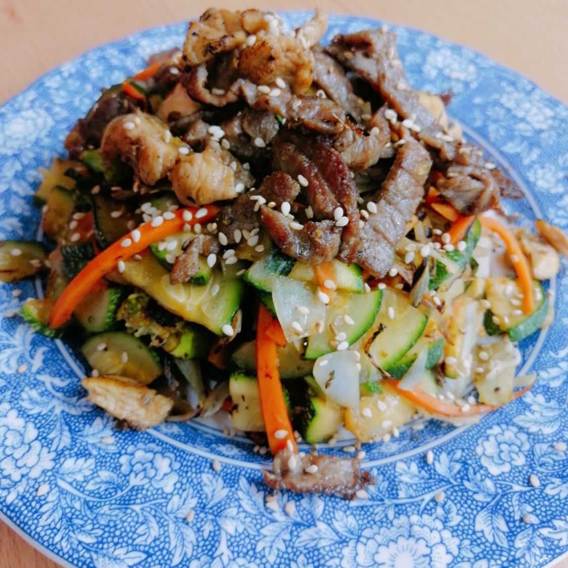 Tepanyaki de camarón con verduras a la plancha, calabaza, cebolla, zanahoria , brocoli