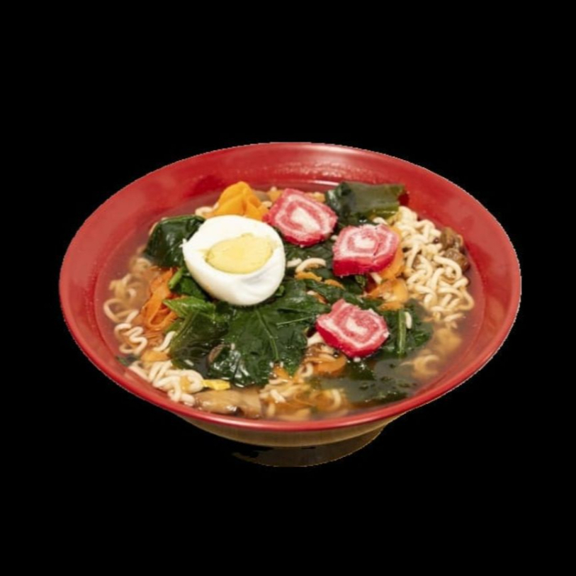 Sopa ramen (850 ml), pollo (120 g), vegetales, huevo y naruto.