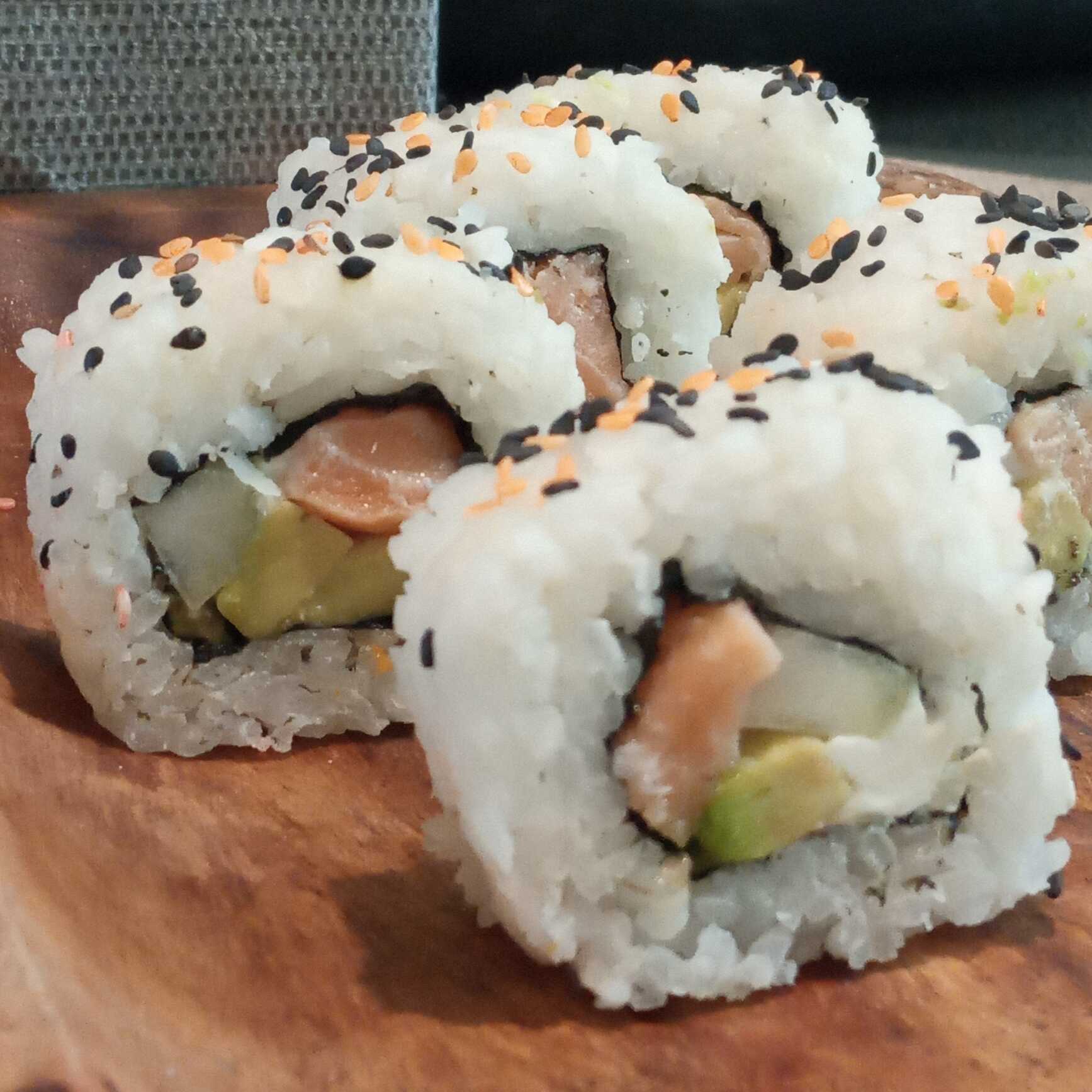 xd: pepino, queso philadelphia, aguacate y salmon natural