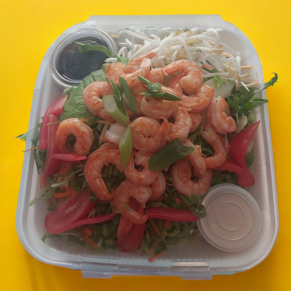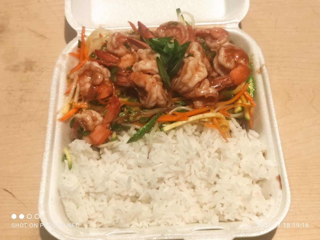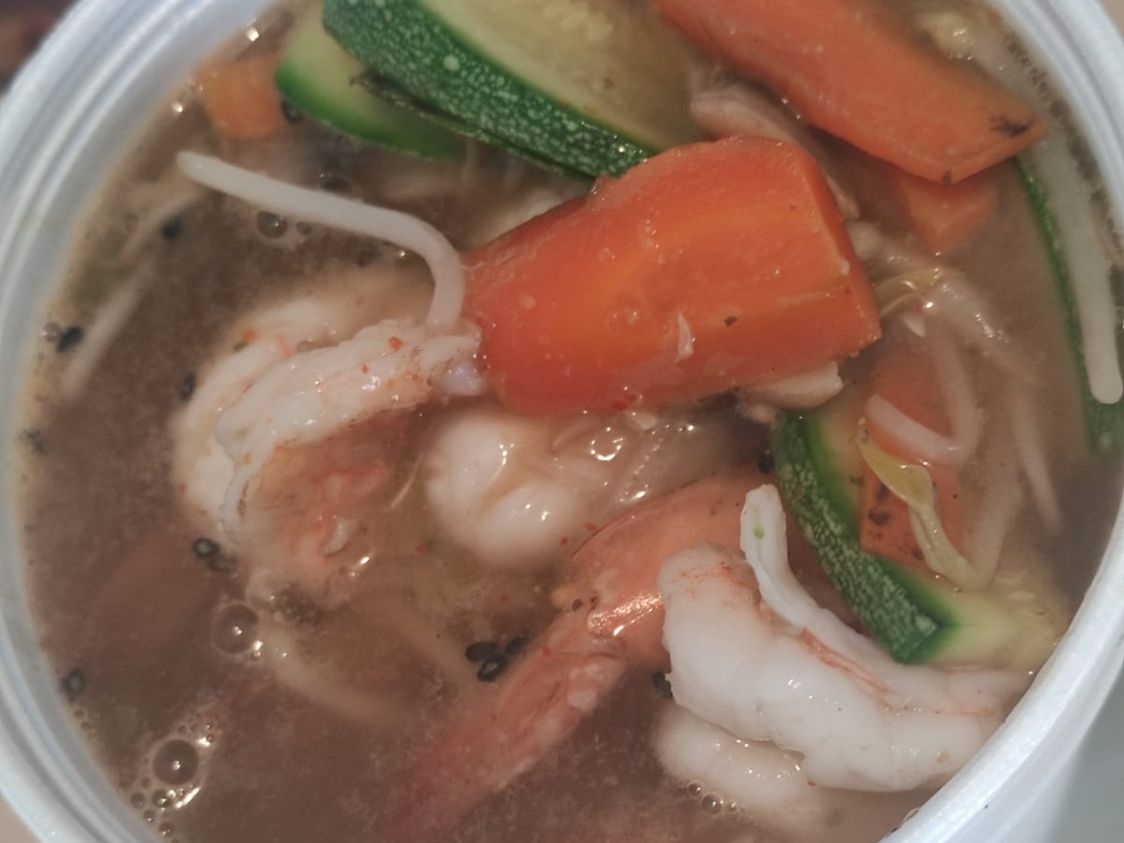 Contiene camarones y verduras.