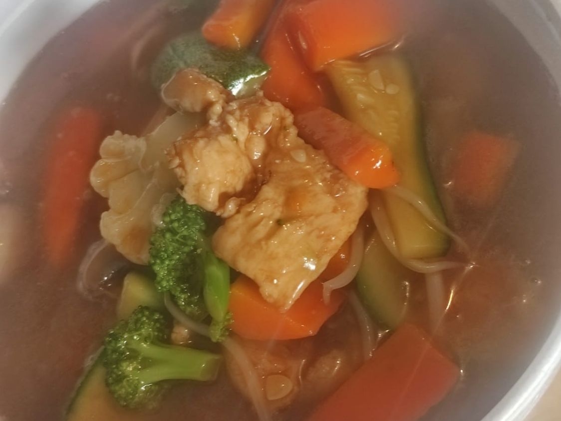 1/2 Litro verdura picada con arroz y pollo.