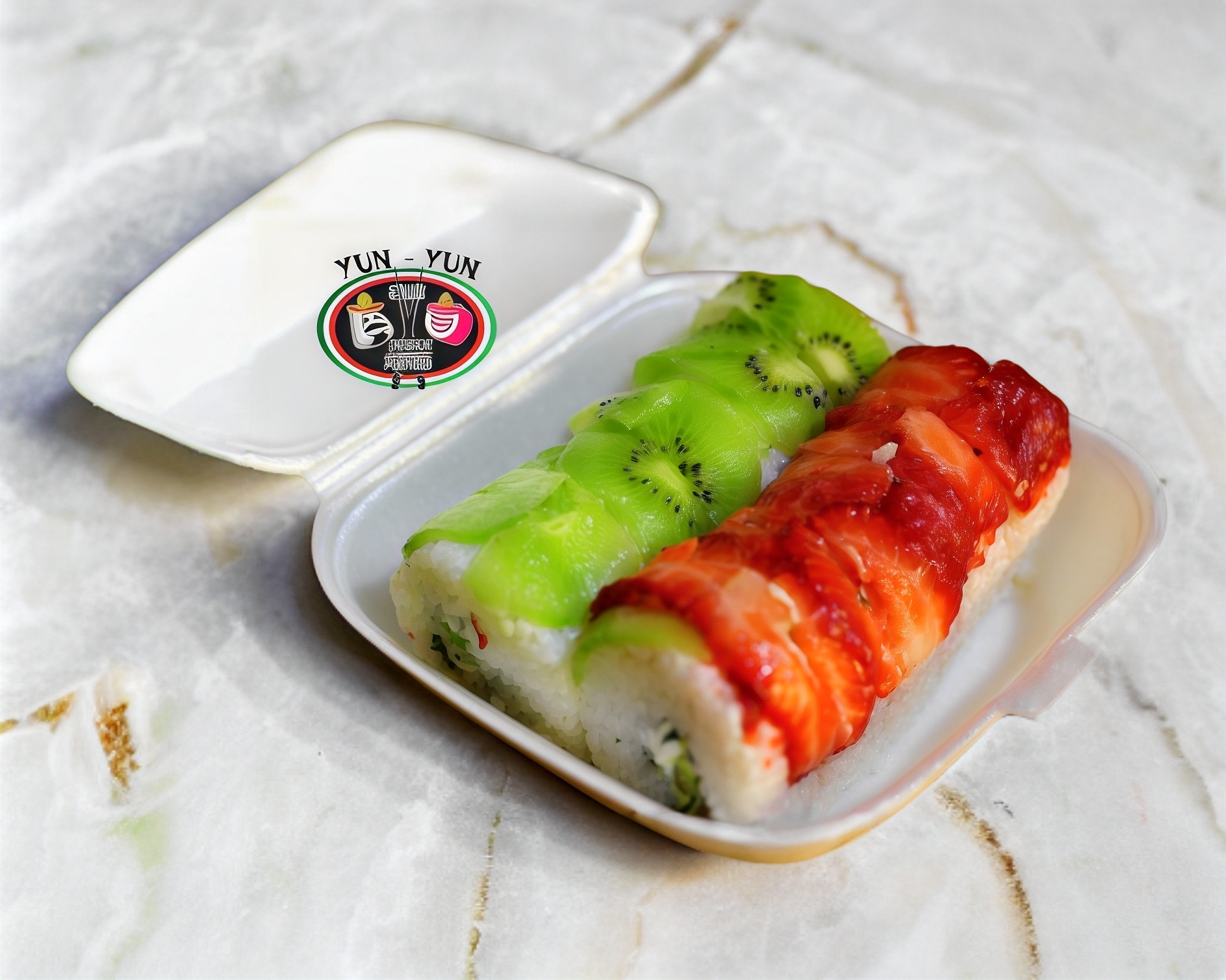 Por fuera Philadelphia, fresa, kiwi y almendra caramelizada; por dentro Philadelphia, aguacate, camarón tempura y coco rallado.