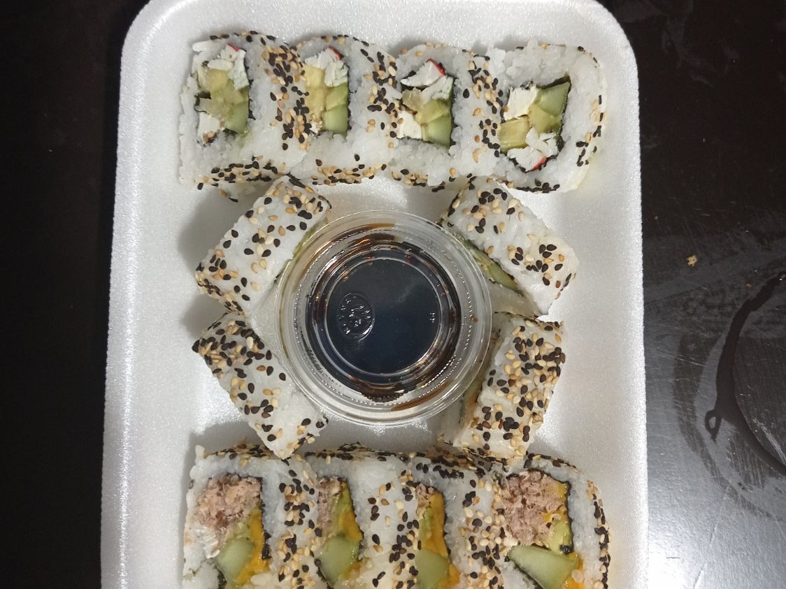 6pzs Nori roll atun, 6pzs clasico de cangrego y 6pzs de frutal foll
