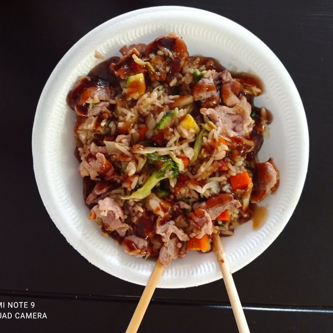 480 Gramos de fideo frito, cebolla, cebollín, zanahoria, calabaza, col, brócoli, germen de soya, acompañado de salsa teriyaki y proteína cerdo y pollo