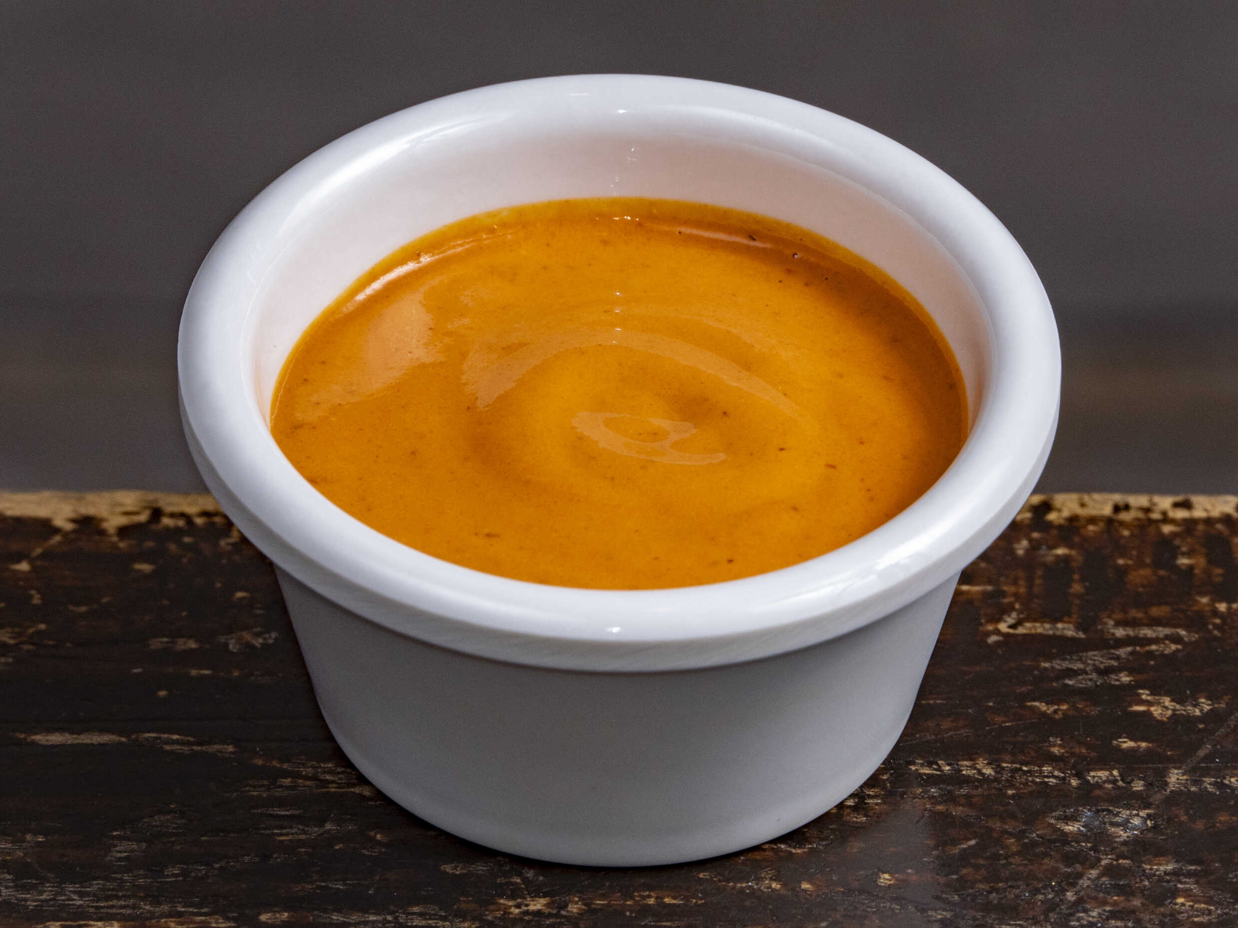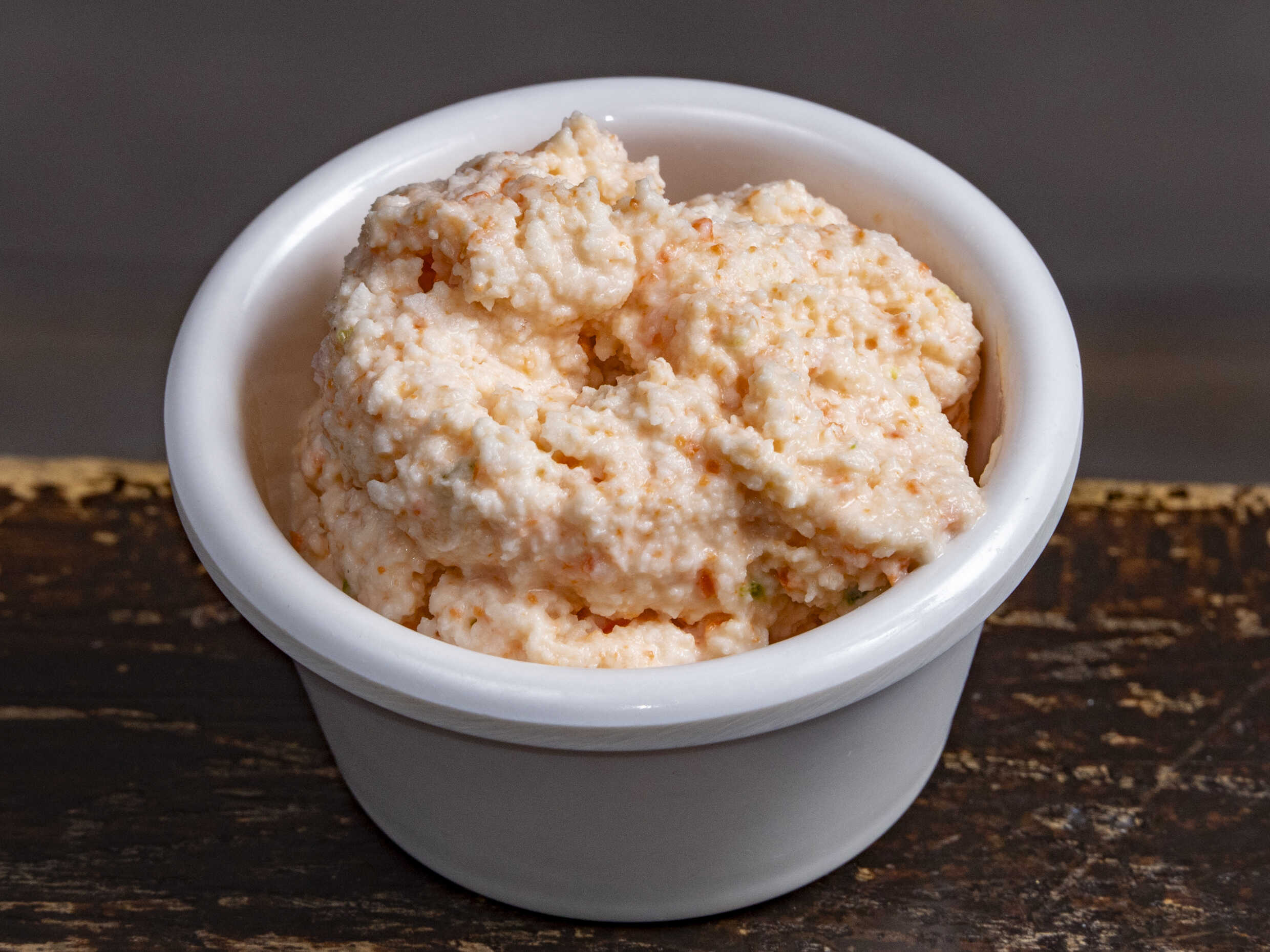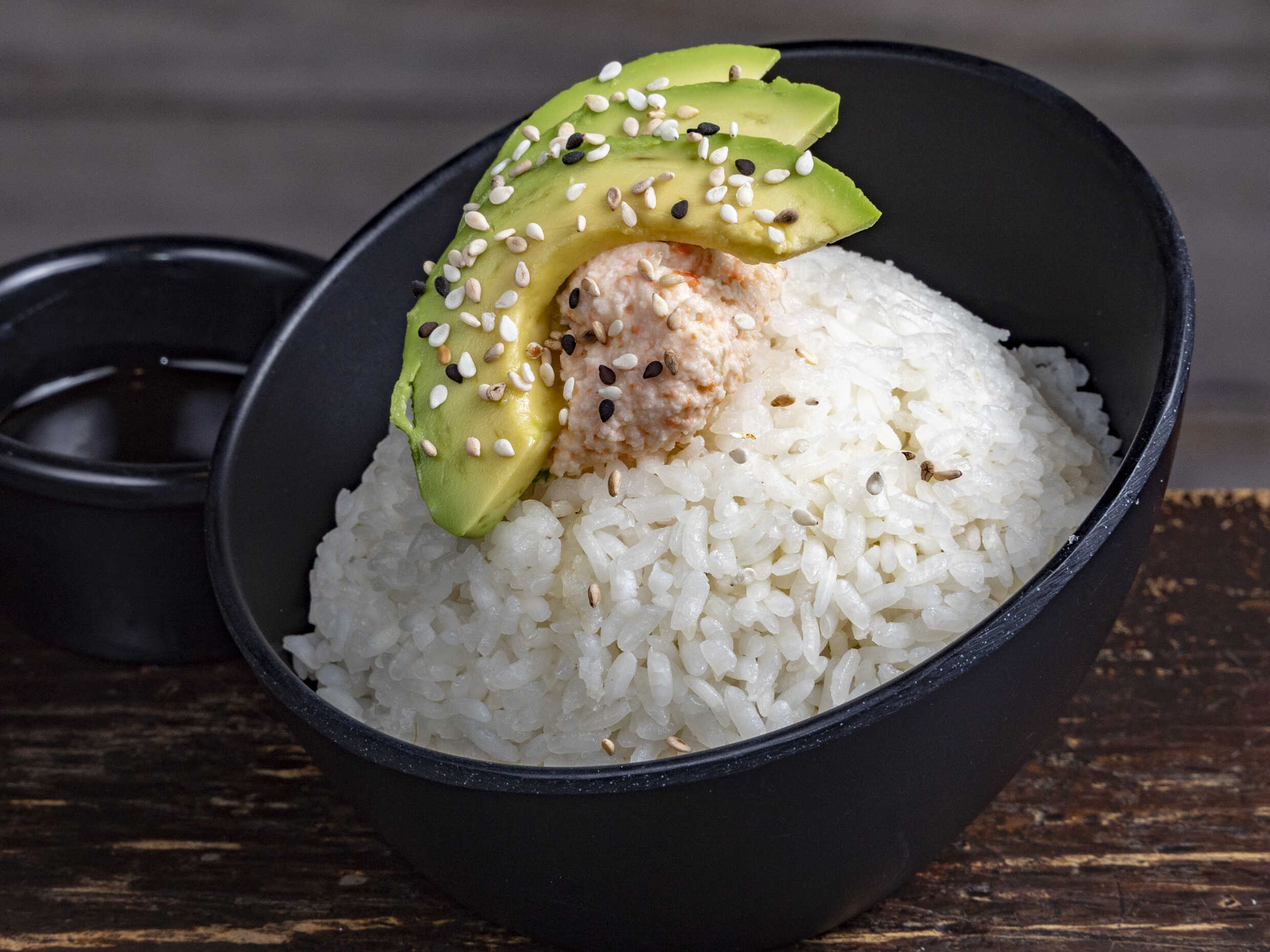 Surimi, aguacate, queso Philadelphia, envuelto en queso manchego y capeado con pasta, tempura.