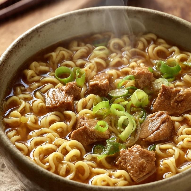 RAMEN ACOMPAÑADA DE UNA DELICIOSA CARNE DE RES JUGOSA Y SUAVE