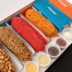 Banderilla estilo Coreano con nuestra cobertura especial extra crujiente. Elige tu relleno ideal: Salchicha, Queso Manchego derretido o Combinada. Dale tu toque personal seleccionando 2 salsas de nuestras 14 opciones exclusivas. 💡 Completa la experiencia agregando tu refresco favorito.
