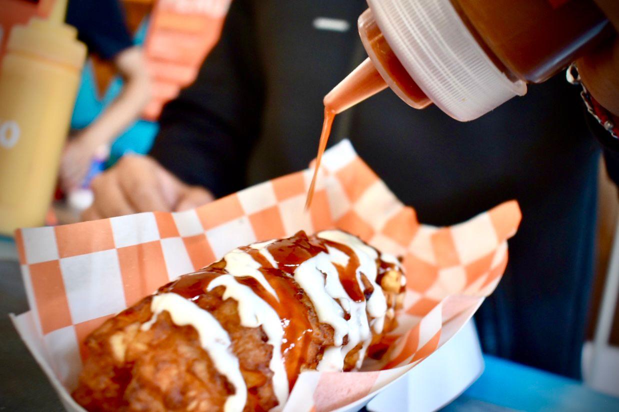 Disfruta de dos deliciosas banderillas coreanas, crujientes por fuera y suaves por dentro. Preparadas con una irresistible combinación de masa dorada y relleno jugoso, perfectas para acompañar con la salsa de tu elección. ¡Un antojo imperdible! 🍢🔥