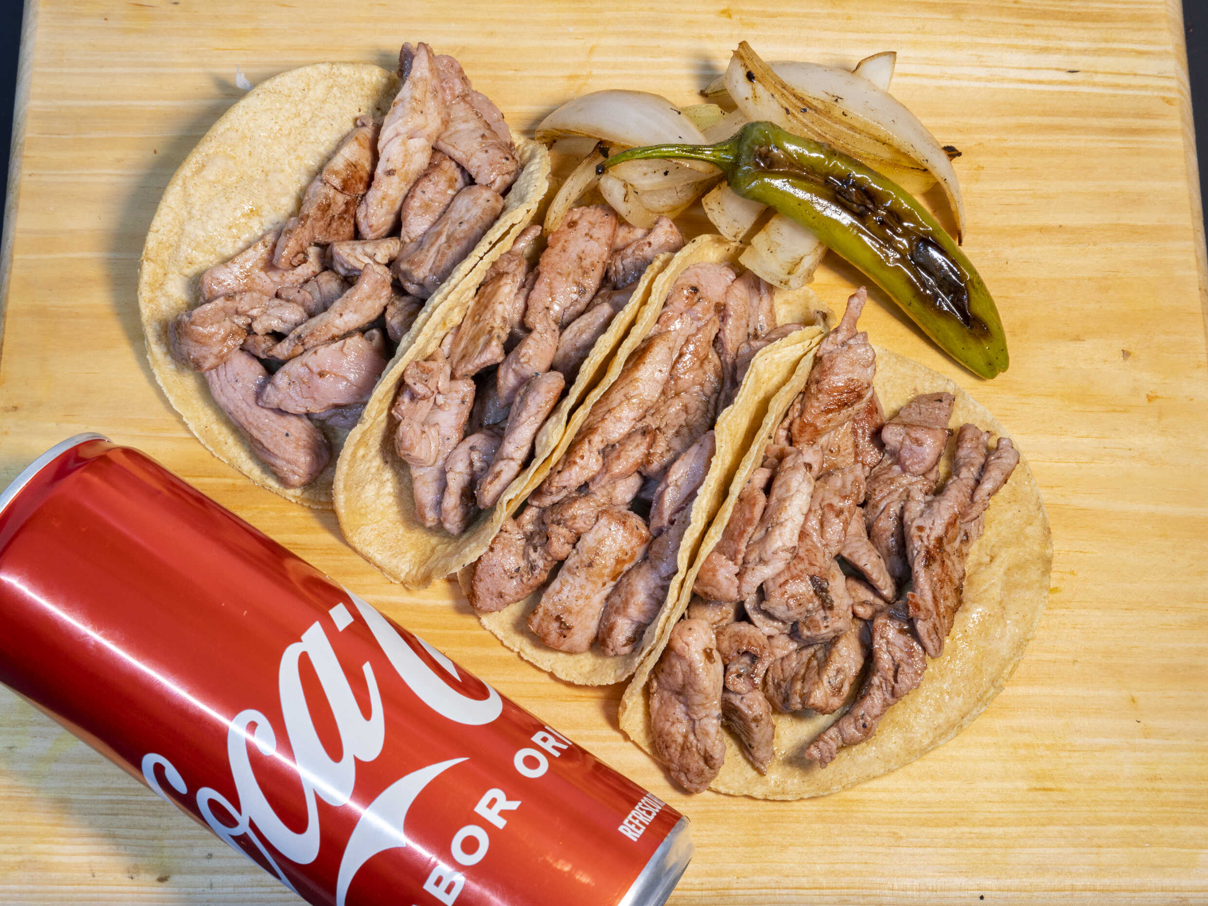 3 tacos de arrachera con tu refresco favorito (355 ml)