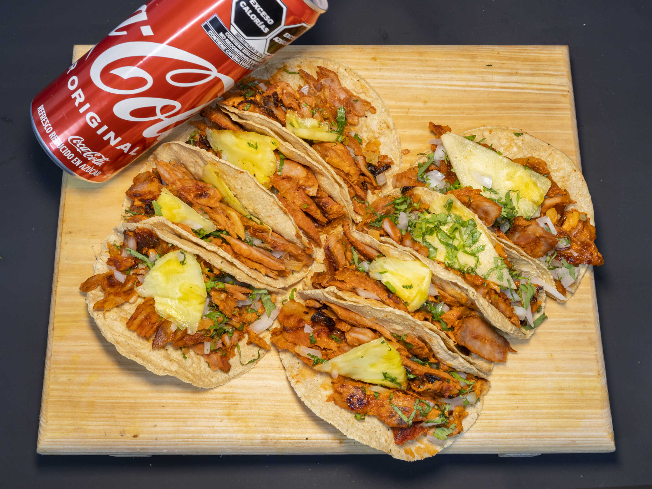 8 tacos de pastor con tu refresco favorito (355 ml)