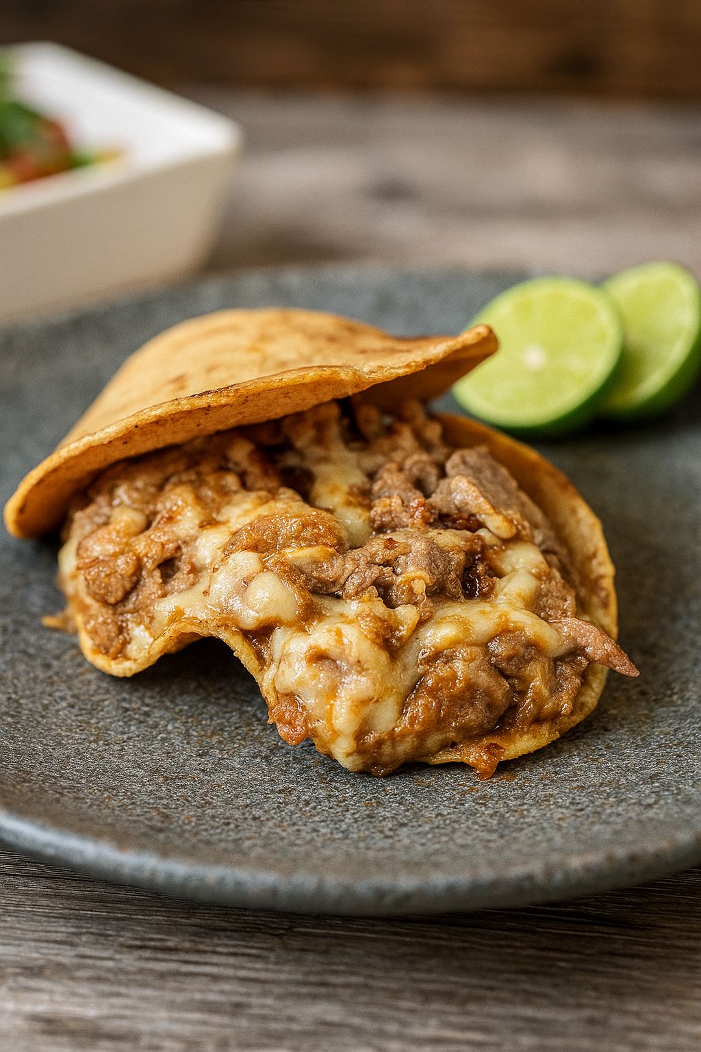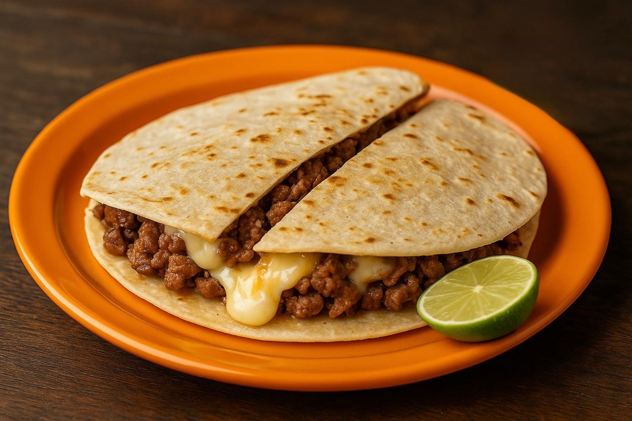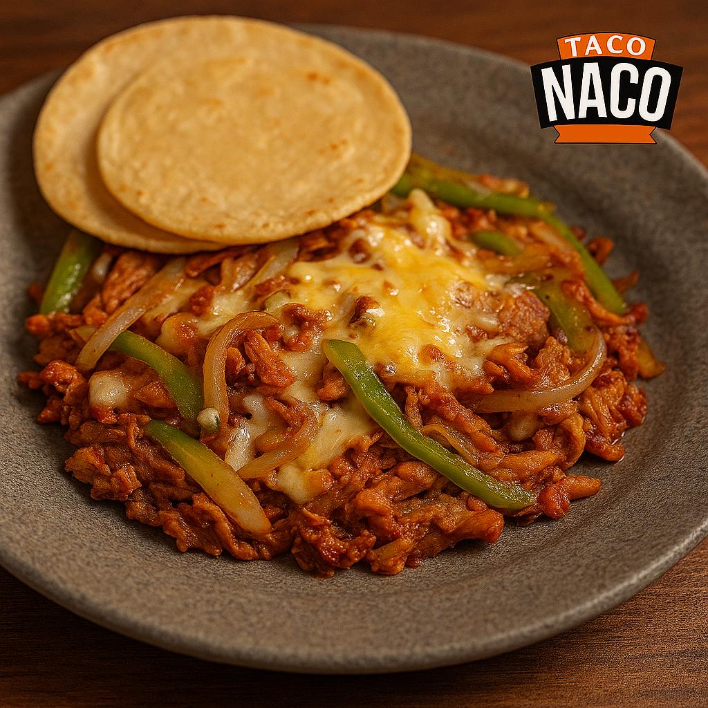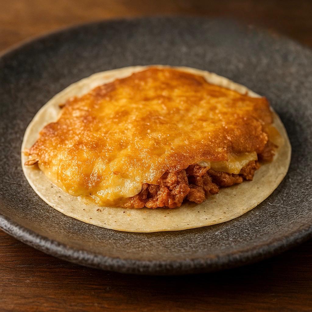 Fusión taquera con sabor a pizza y queso gratinado.