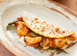 1 Pza. Camarón sazonado con cebolla pimiento morrón y queso gratinado con la tortilla que prefieras (harina o maíz).