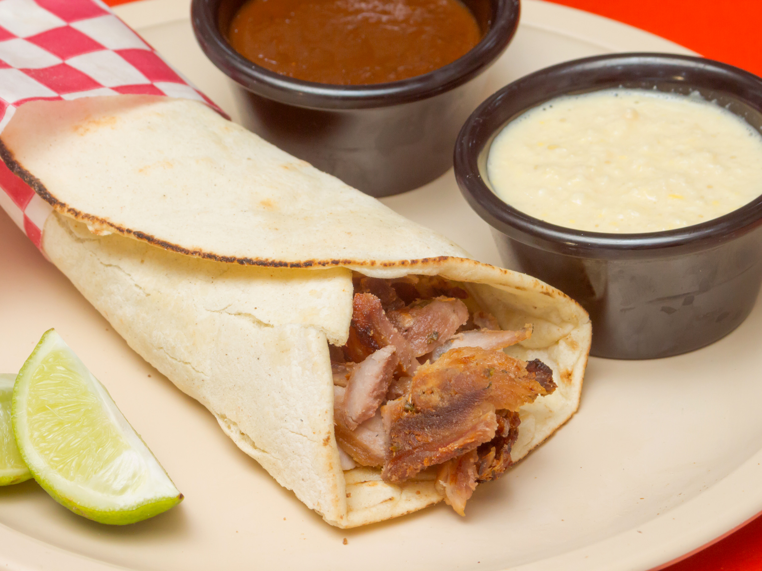 El original tacos oriental estilo Puebla tortilla de maíz con salsa de chipotle y limones a parte. Se sirve 1 taco.