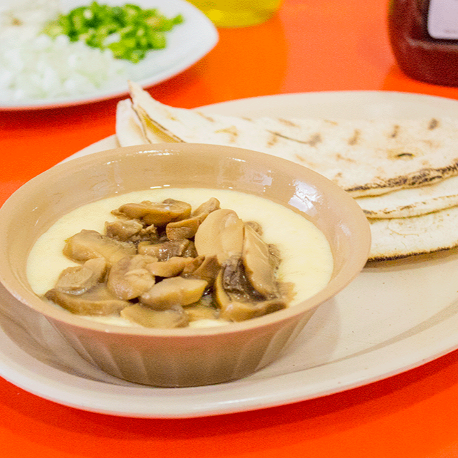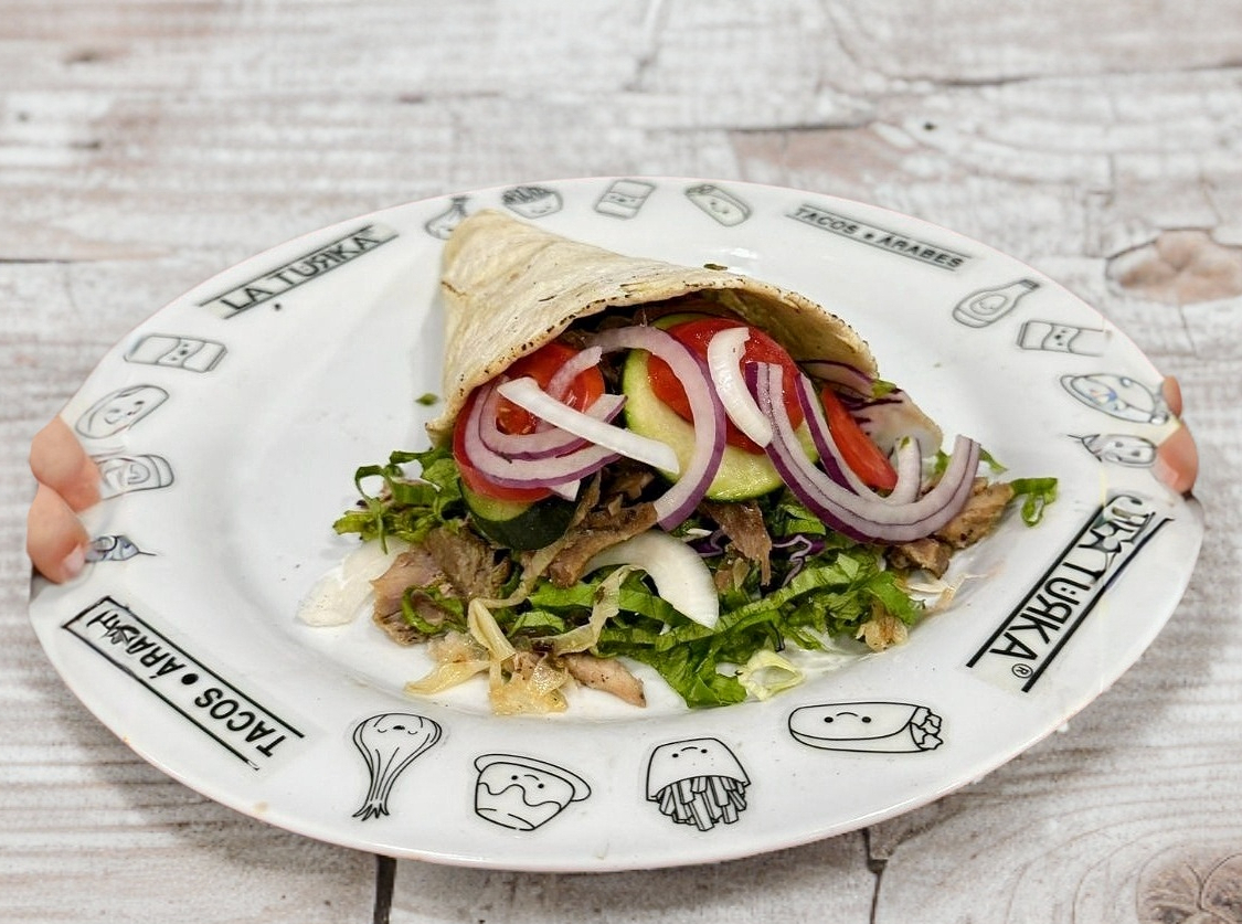 Carne La Türka® aderezada con vegetales, aceite de oliva, pimienta, papas adentro y servido con jocoque cremoso, servido en pan pita artesanal, simplemente inigualable.