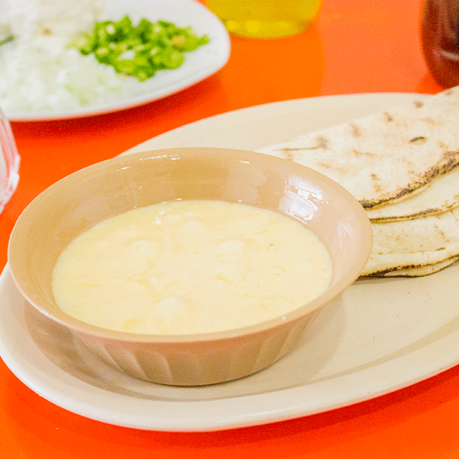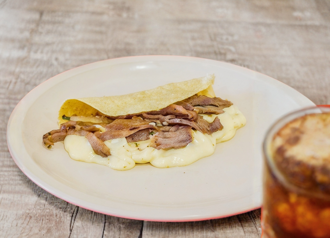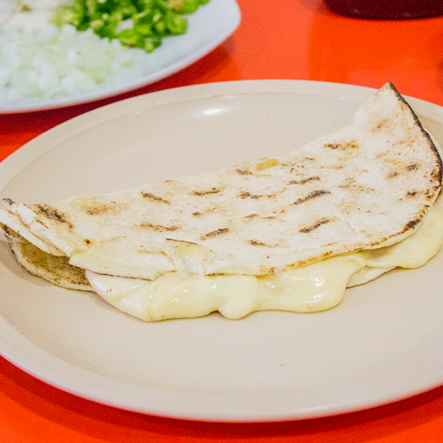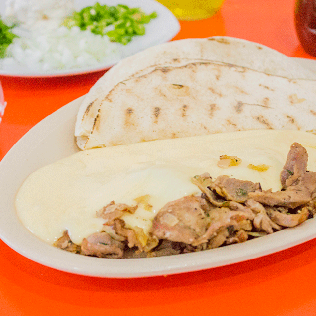 135 gramos de Delicioso queso gouda fundido acompañado de 2 piezas de tortilla de pan árabe, salsa chipotle y limones.