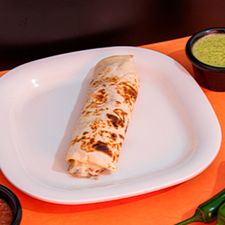 Sabroso burrito relleno de longaniza y queso, en tortilla burrera de harina